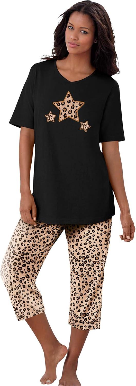 Dreams & Co. Plus Size 2-Piece Capri PJ Set(Classic Leopard)