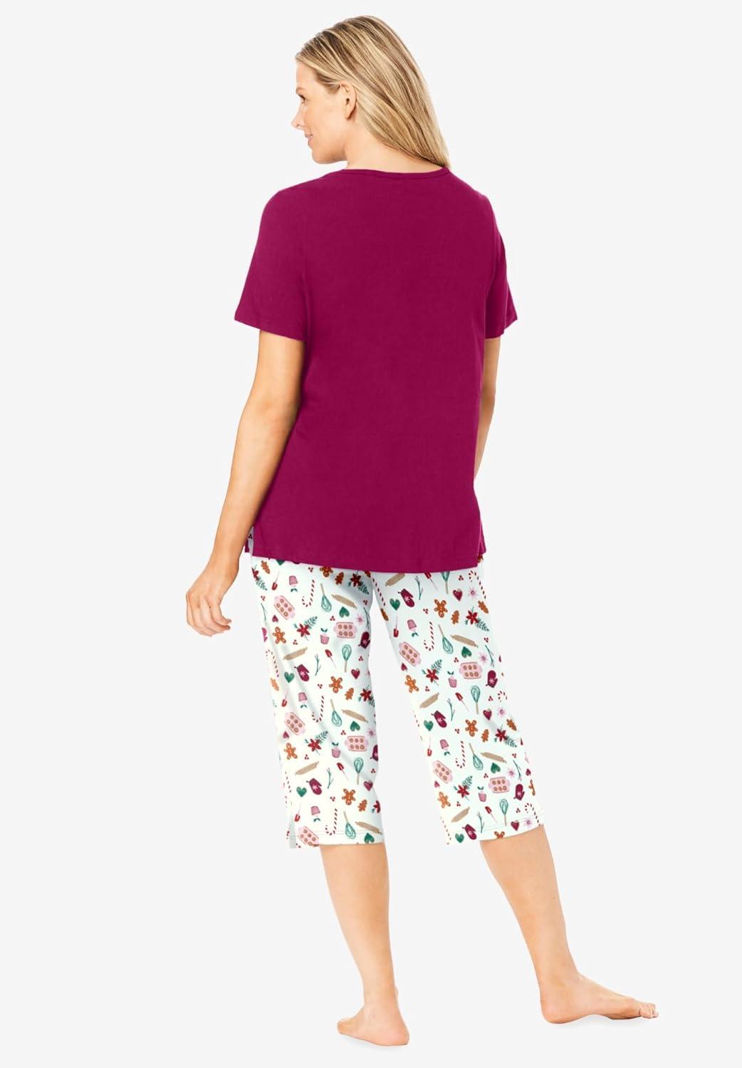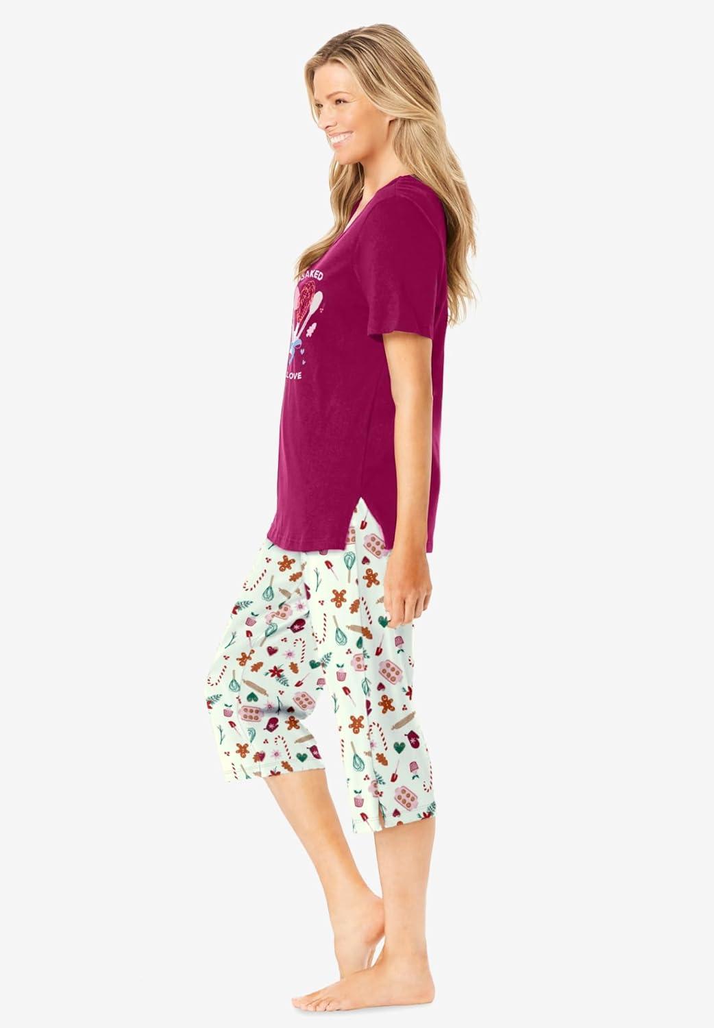 Dreams & Co. Plus Size 2-Piece Capri PJ Set(Pomegranate Love)