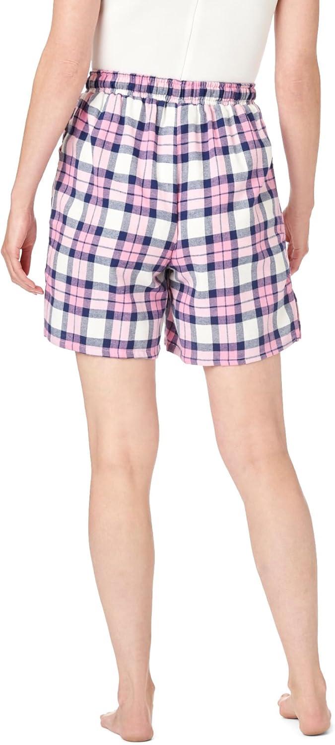 • Dreams & Co. Plus Size Flannel Pajama Short(Plum Burst Plaid)