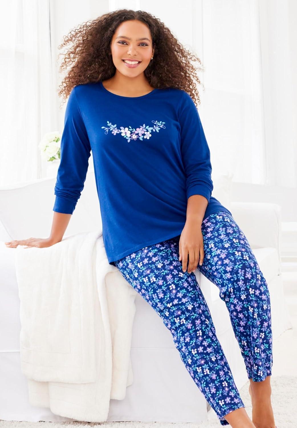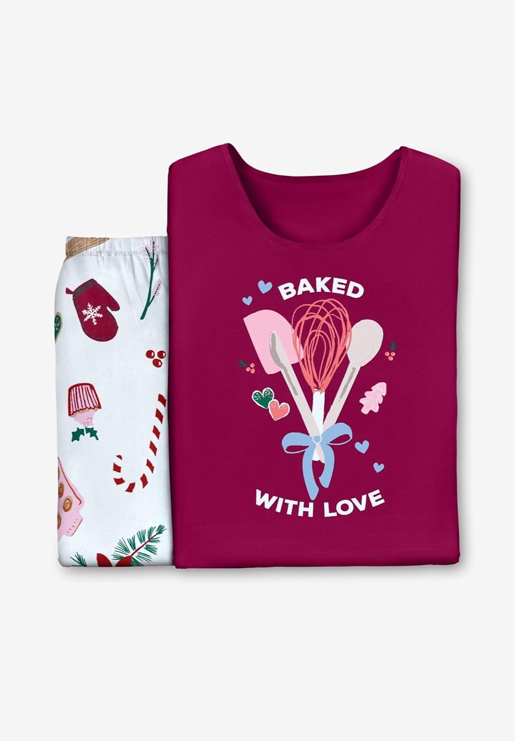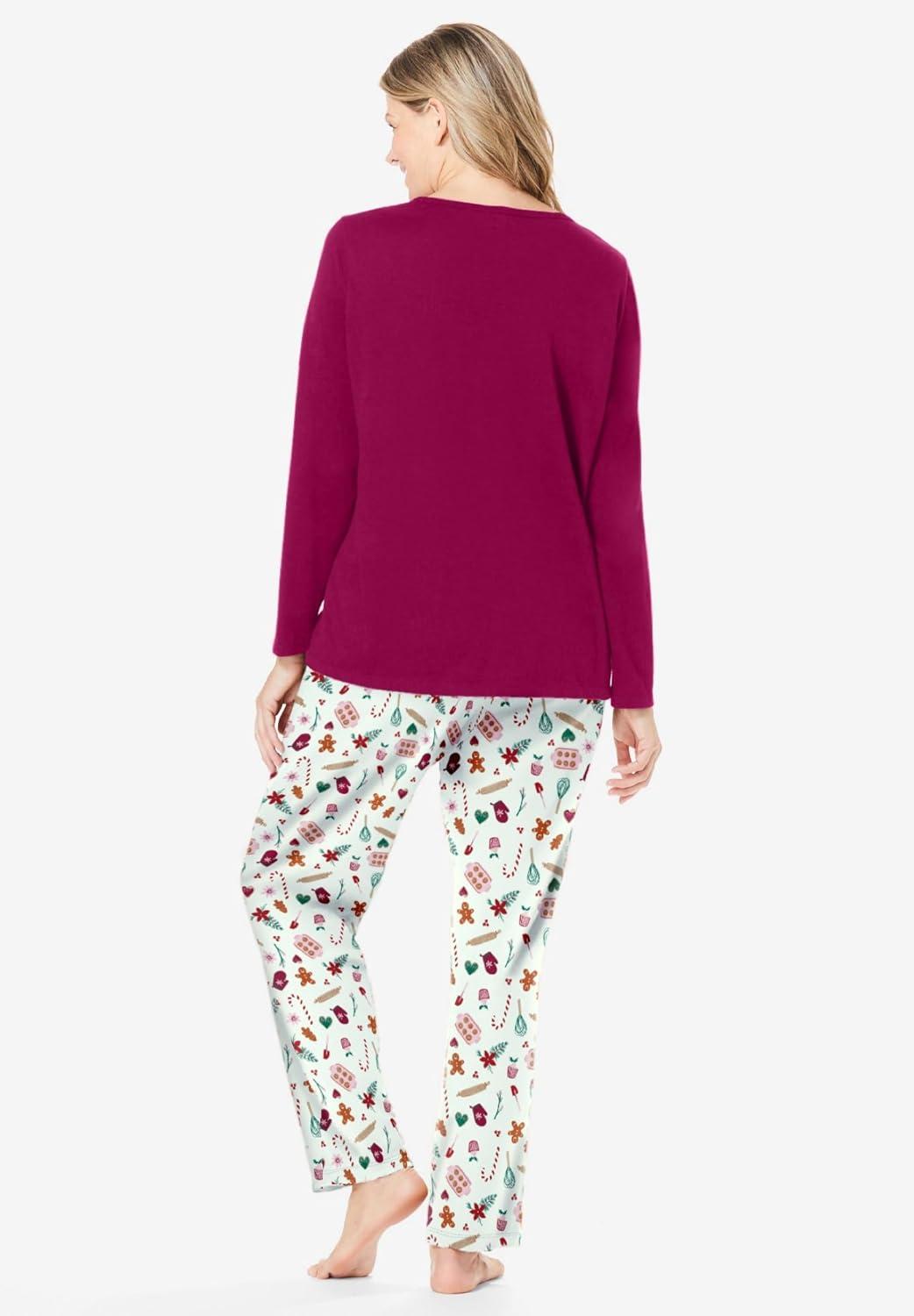 Dreams & Co. Plus Size Long Sleeve Knit PJ Set(Pomegranate Love)
