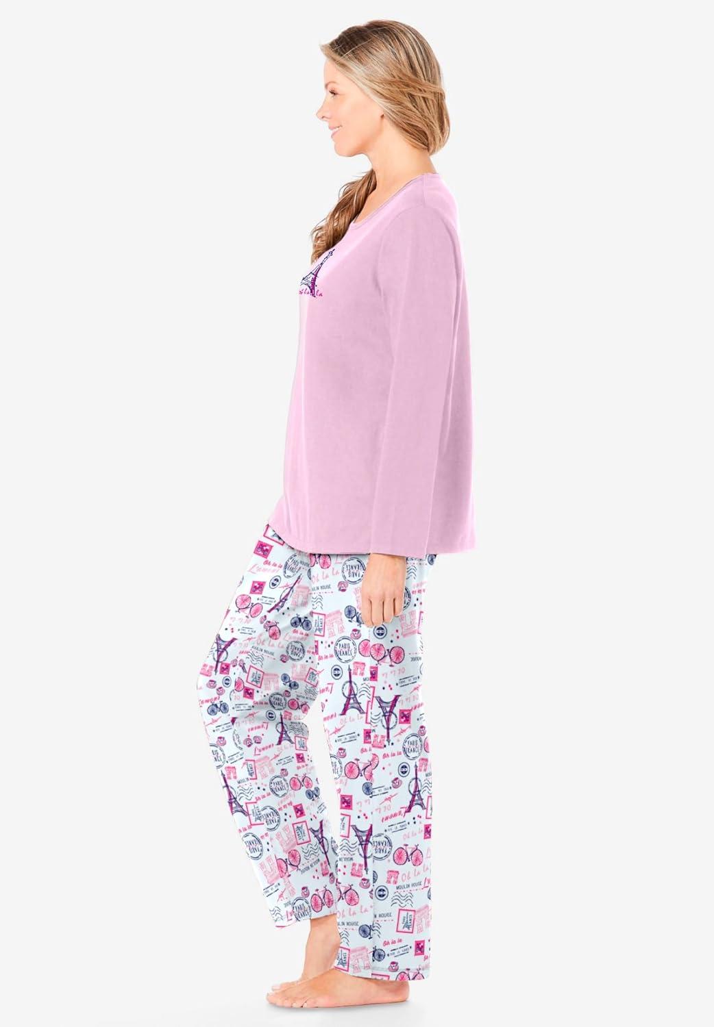 Dreams & Co. Plus Size Long Sleeve Knit PJ Set(Raspberry Sorbet Paris)