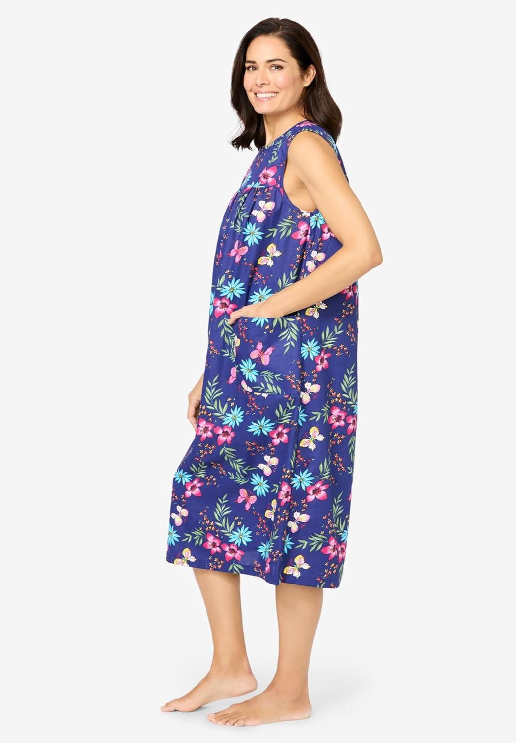 Only Necessities Plus Size Sleeveless Print Lounger(Dark Navy Butterfly)