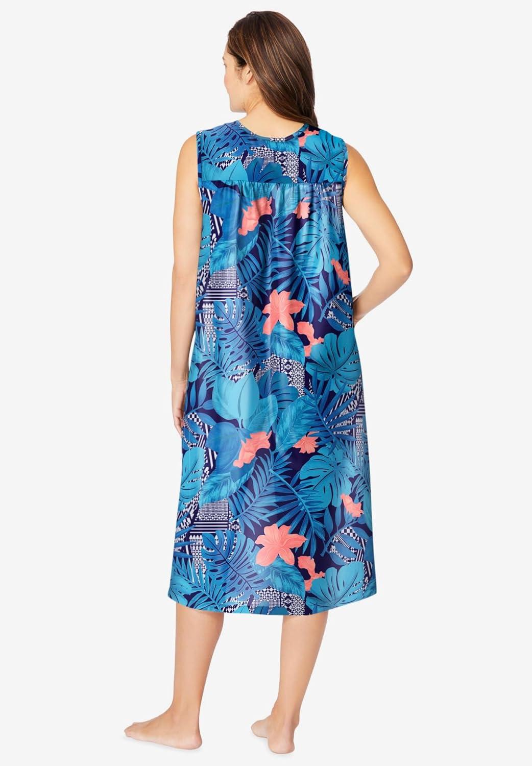 Only Necessities Plus Size Sleeveless Print Lounger(Paradise Blue Tropical Geo)