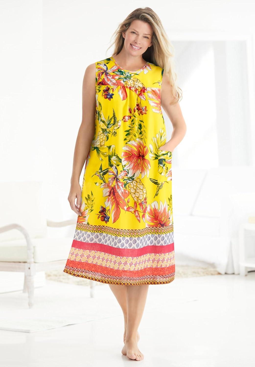 Only Necessities Plus Size Sleeveless Print Lounger(Multi Tropical Ombre)