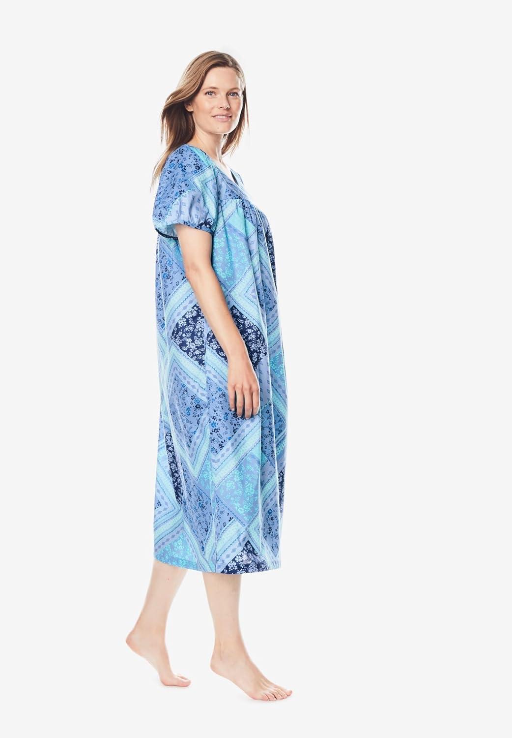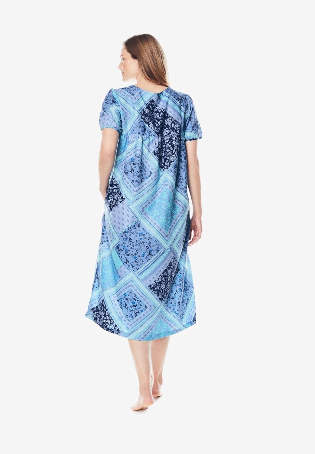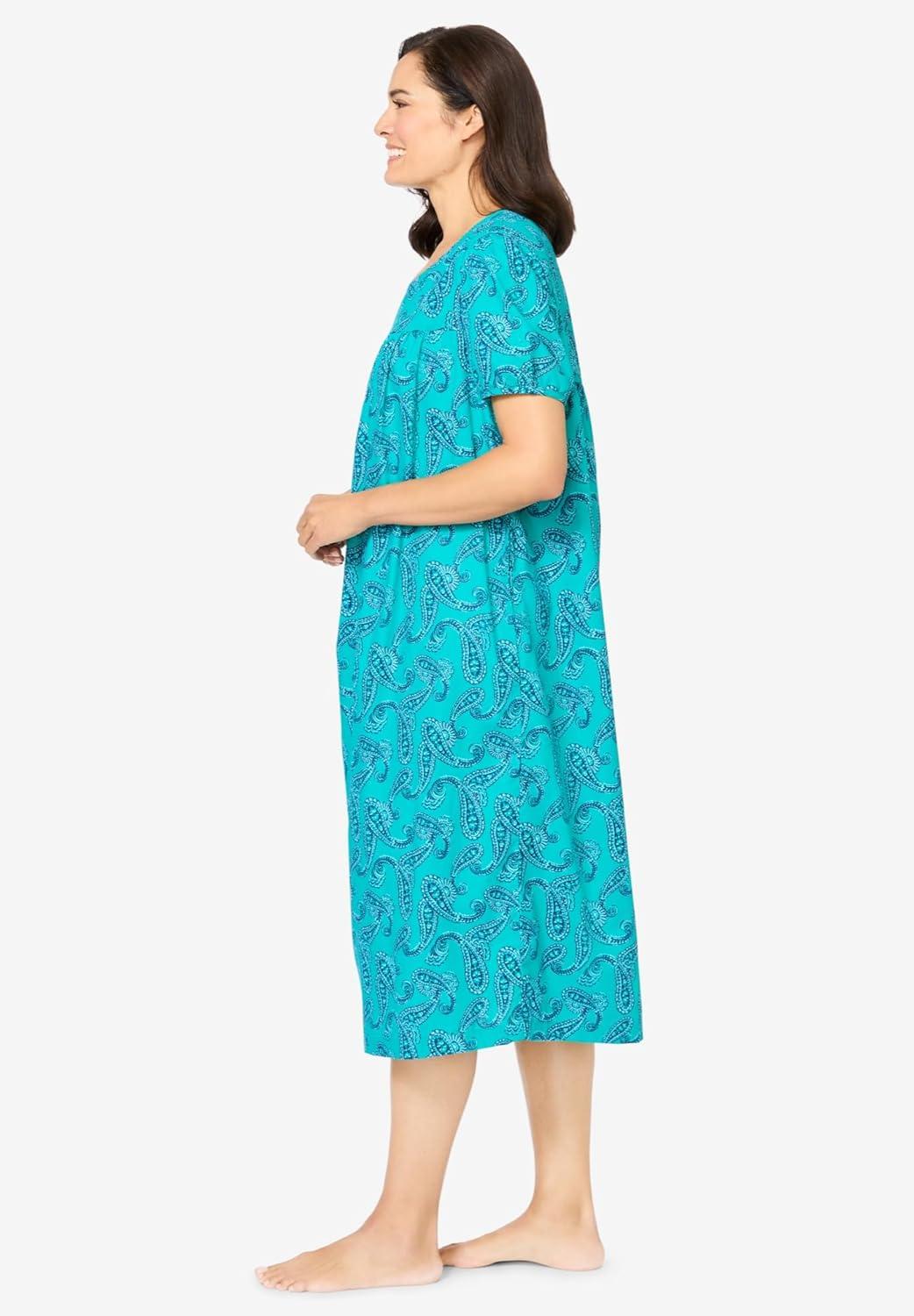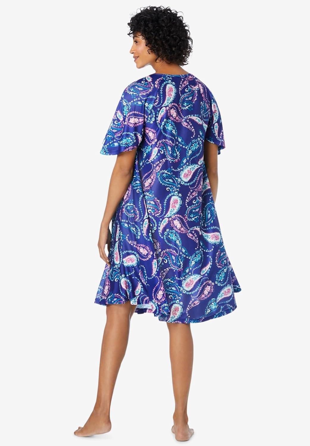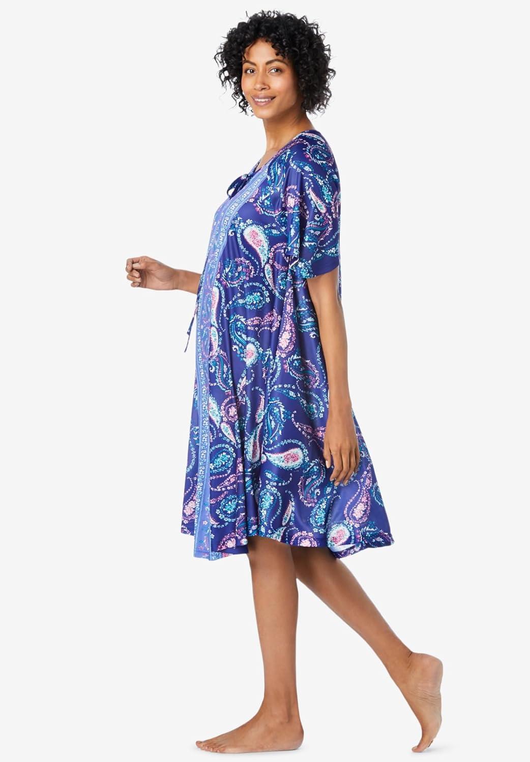 Only Necessities Plus Size Short Sweeping Printed Lounger(Caribbean Blue Tie Dye)