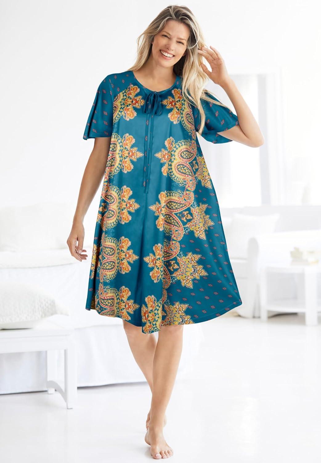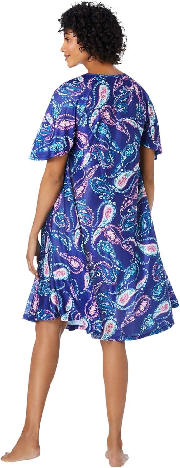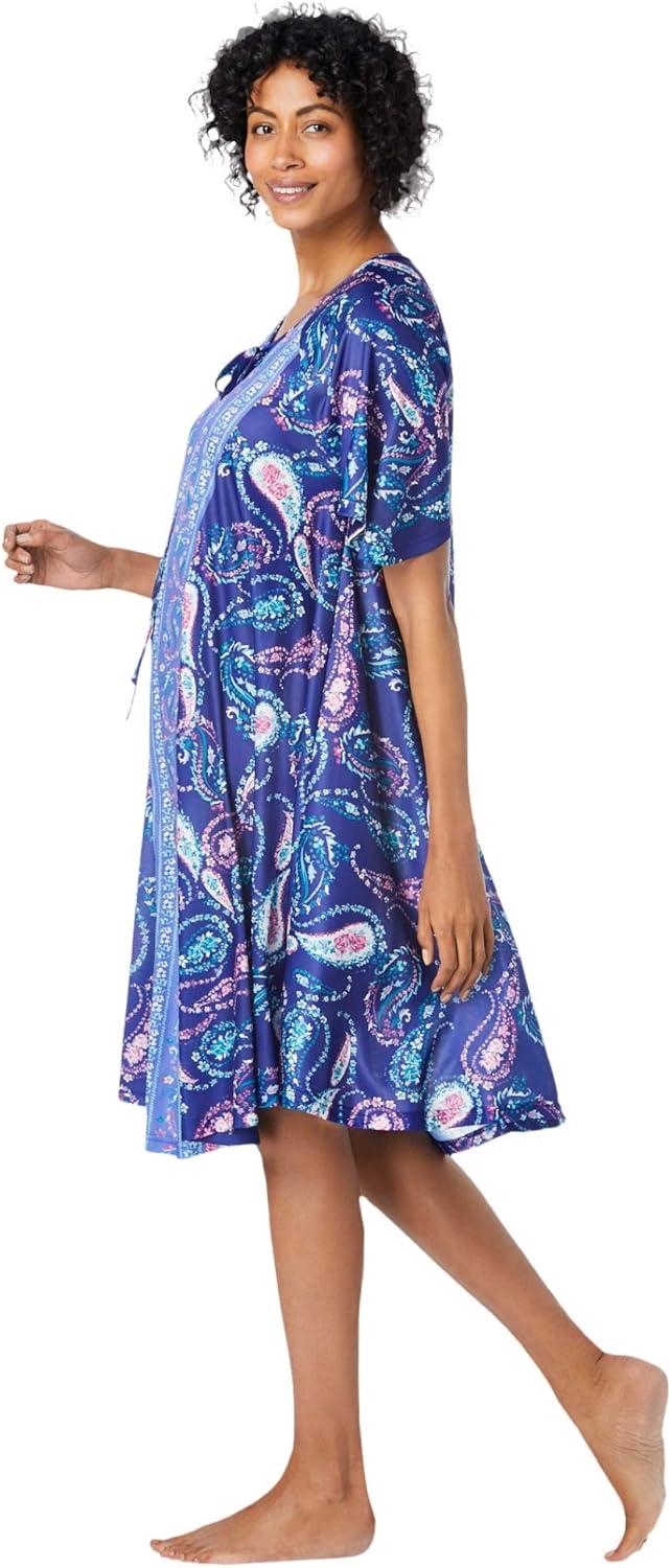Only Necessities Plus Size Short Print Shirred Lounger(Waterfall Paisley)