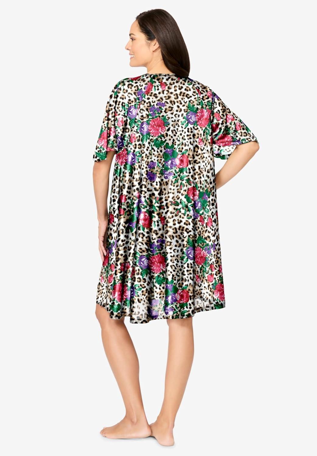 Only Necessities Plus Size Short Sweeping Printed Lounger(Neutral Floral Animal)