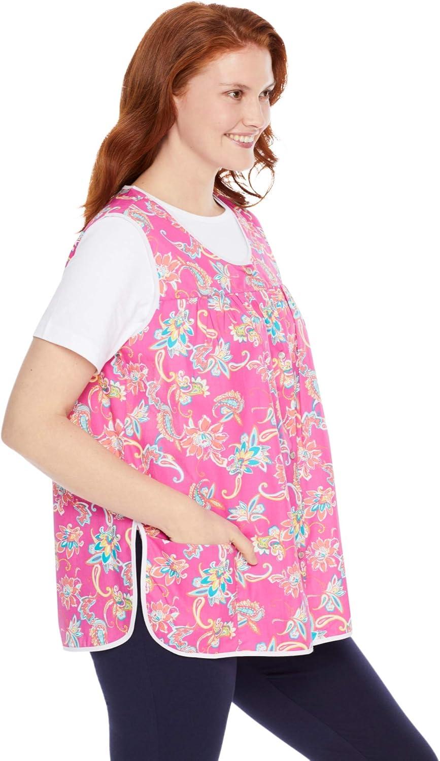 Only Necessities Plus Size Snap-Front Apron(Pink Holiday Print)