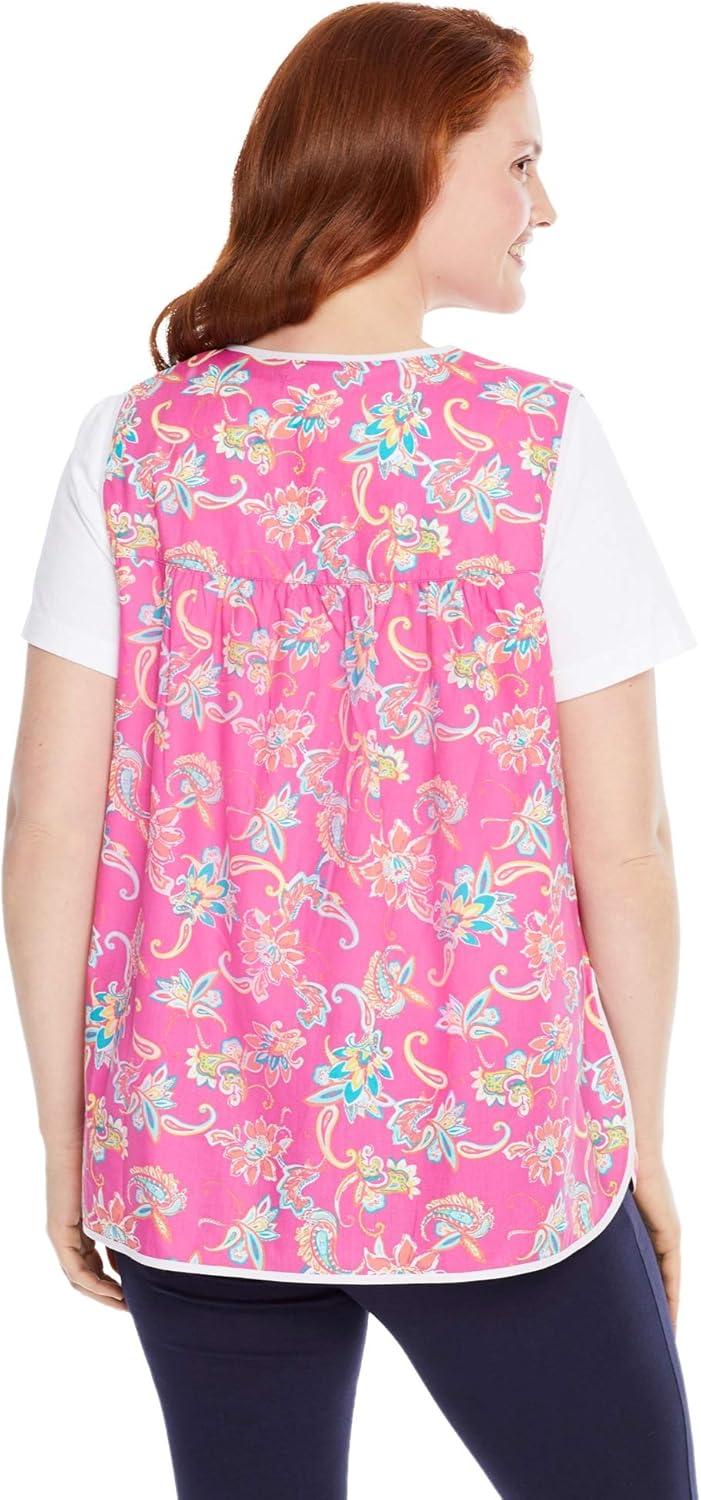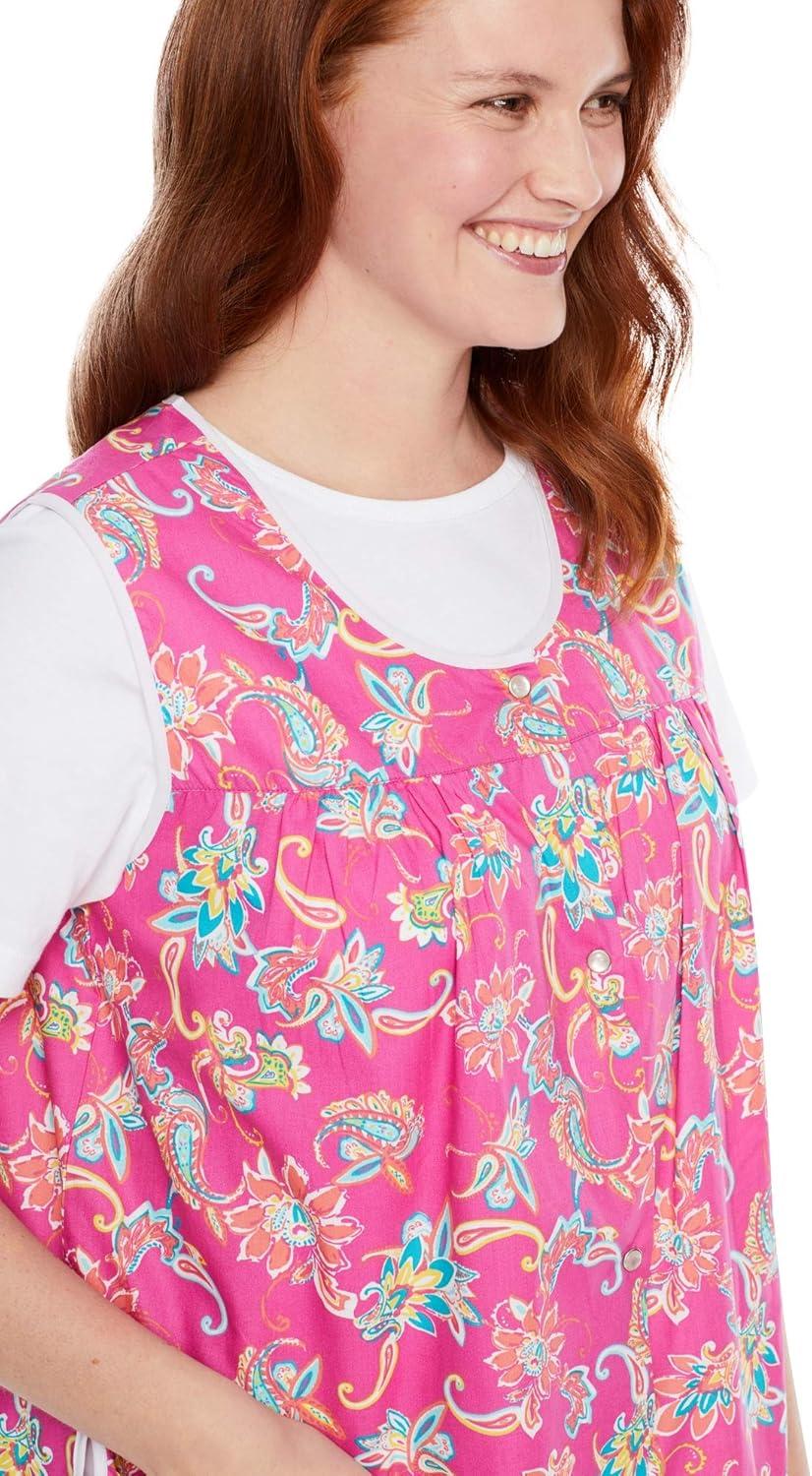 Only Necessities Plus Size Snap-Front Apron(Fresh Violet Foliage)