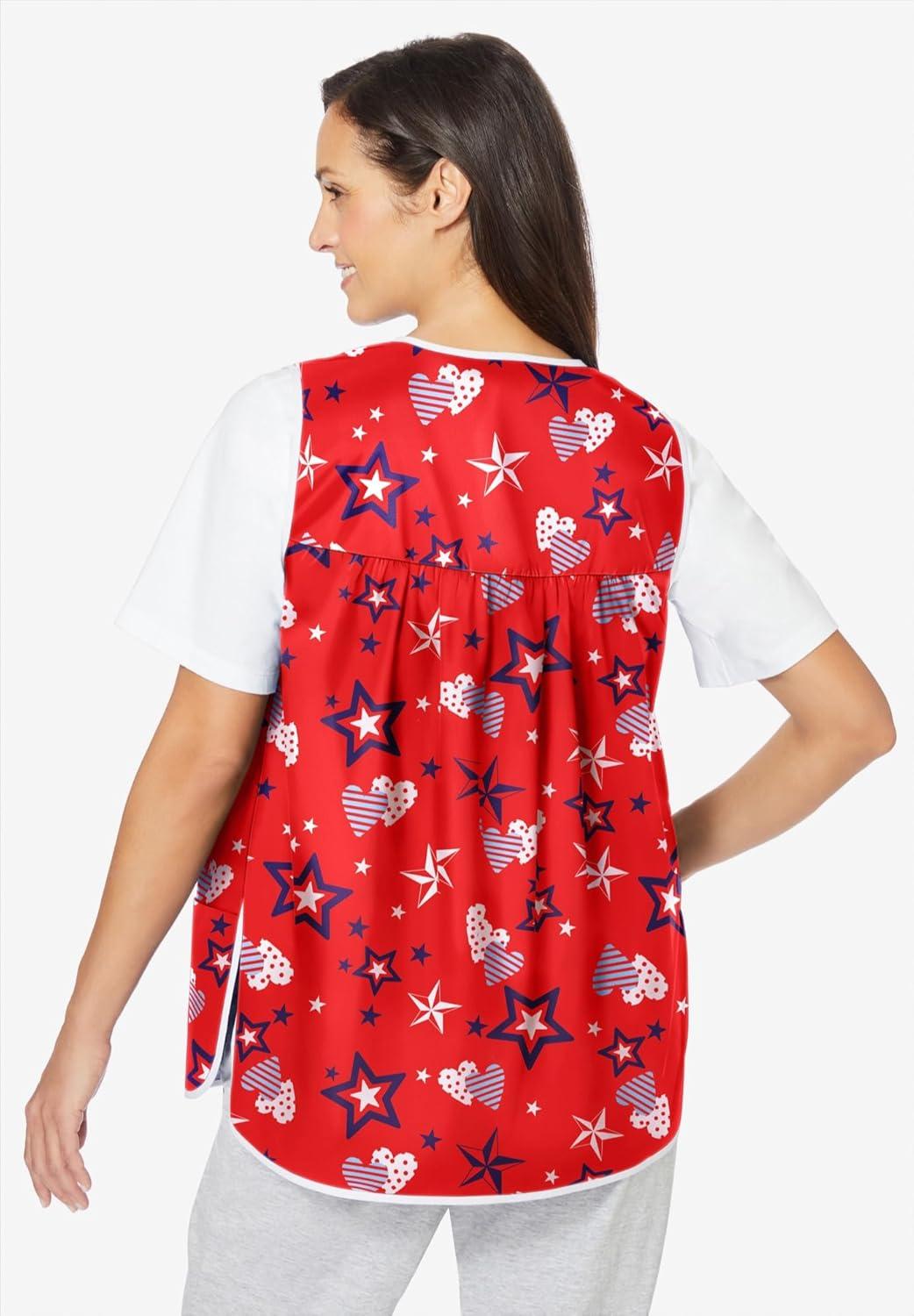 Only Necessities Plus Size Snap-Front Apron(Hot Red Stars)