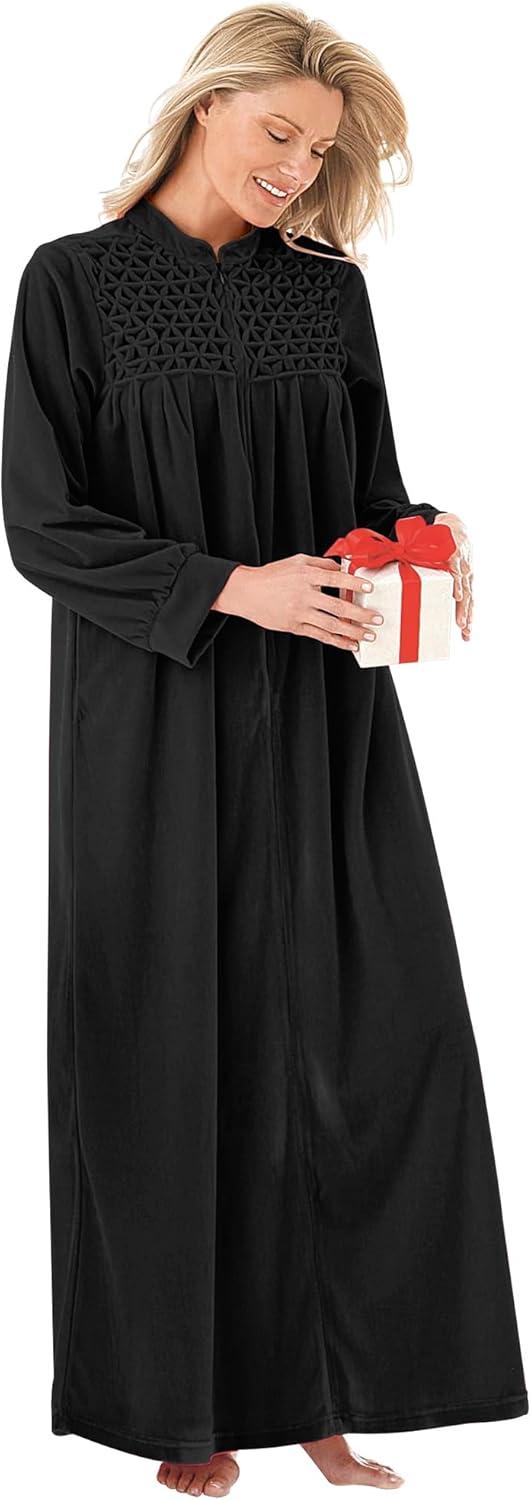 Only Necessities Plus Size Smocked Velour Long Robe