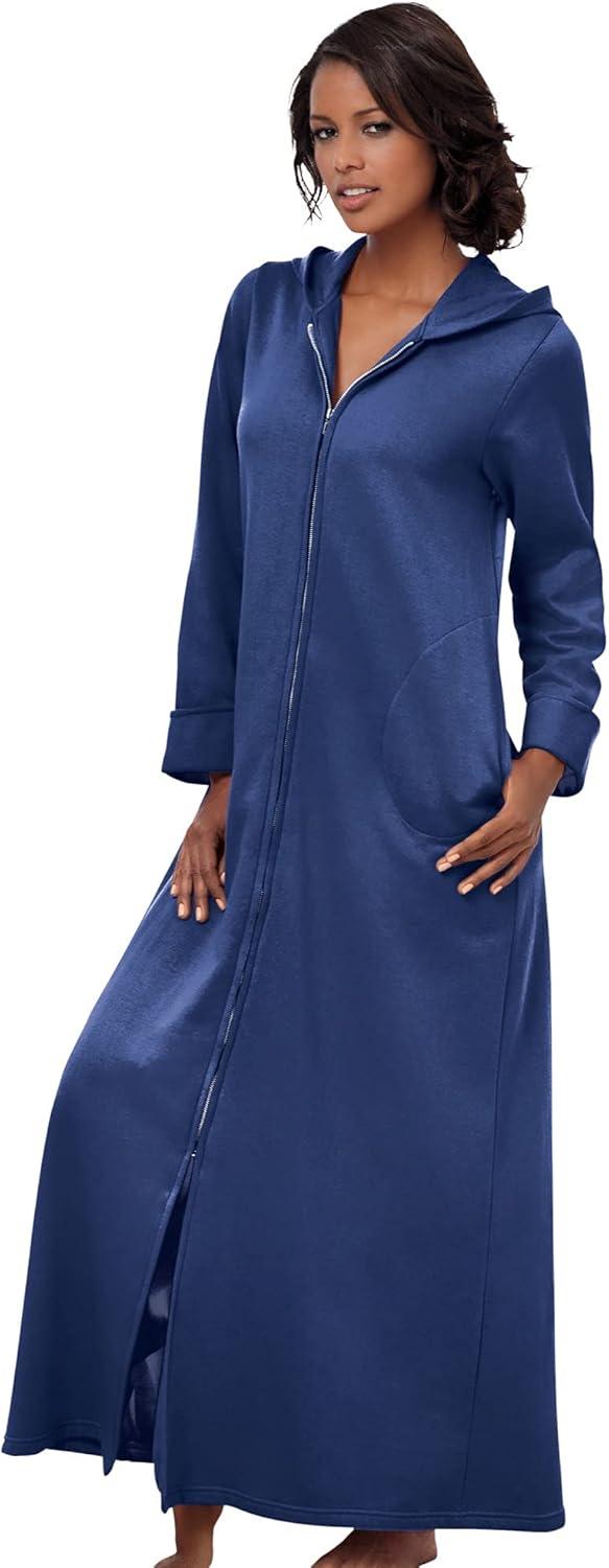 Dreams & Co. Plus Size Long Hooded Fleece Sweatshirt Robe(Rich Magenta)