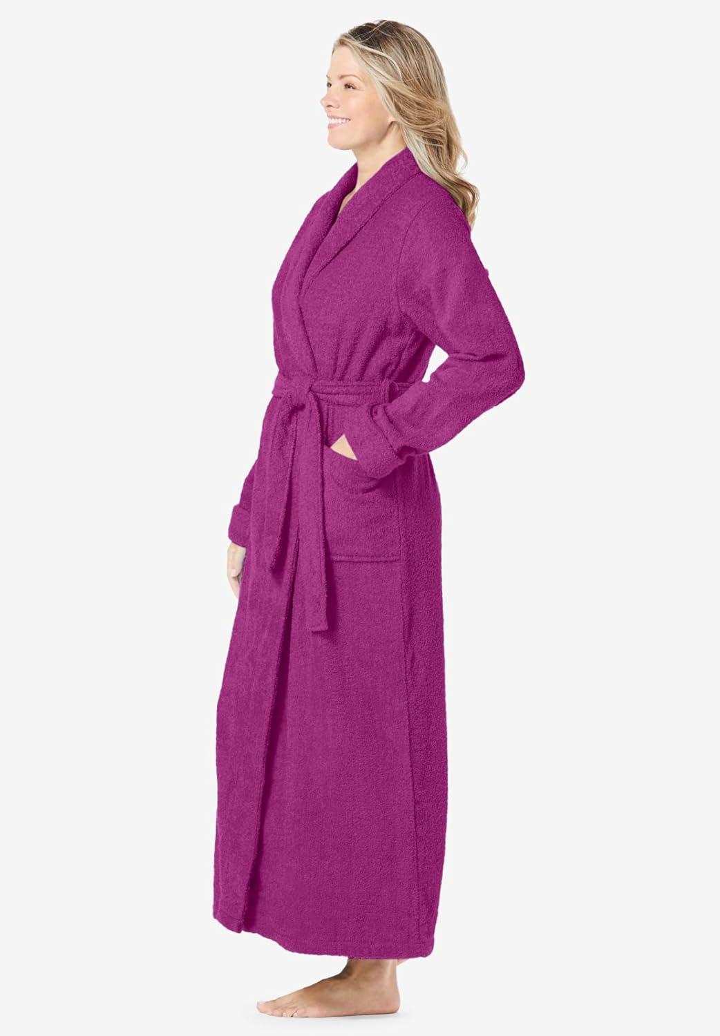 Dreams & Co. Plus Size Long Terry Robe(Rich Violet)