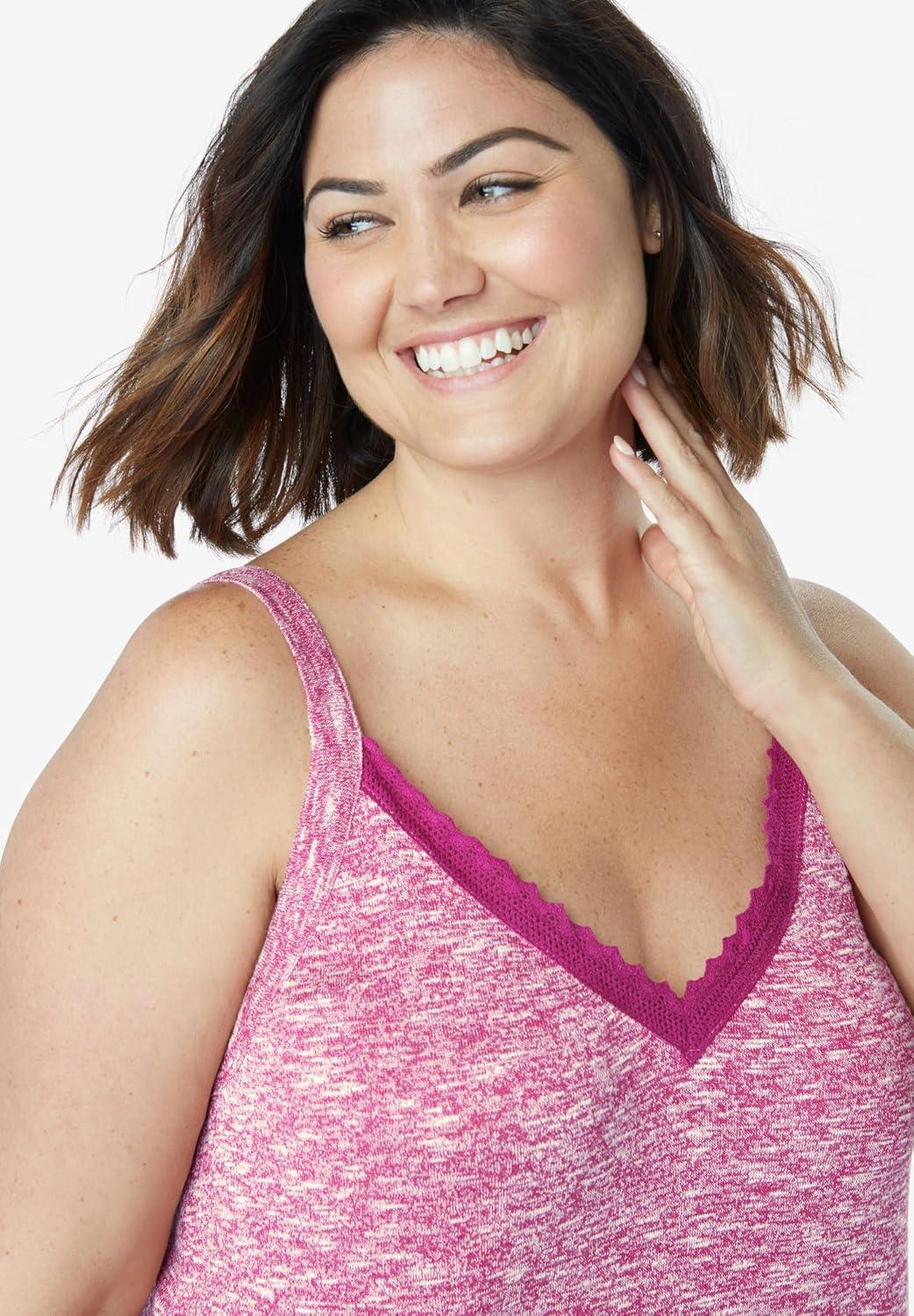 Dreams & Co. Plus Size Marled Lace-Trim Sleep Tank(Deep Teal Marled)