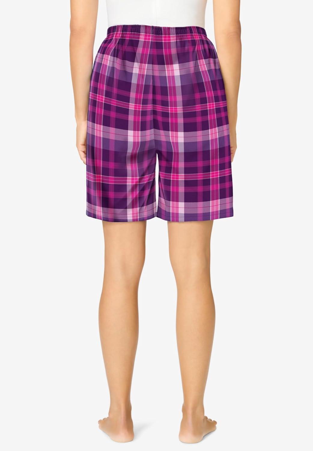 Dreams & Co. Plus Size Woven Sleep Short(Dark Grape Plaid)