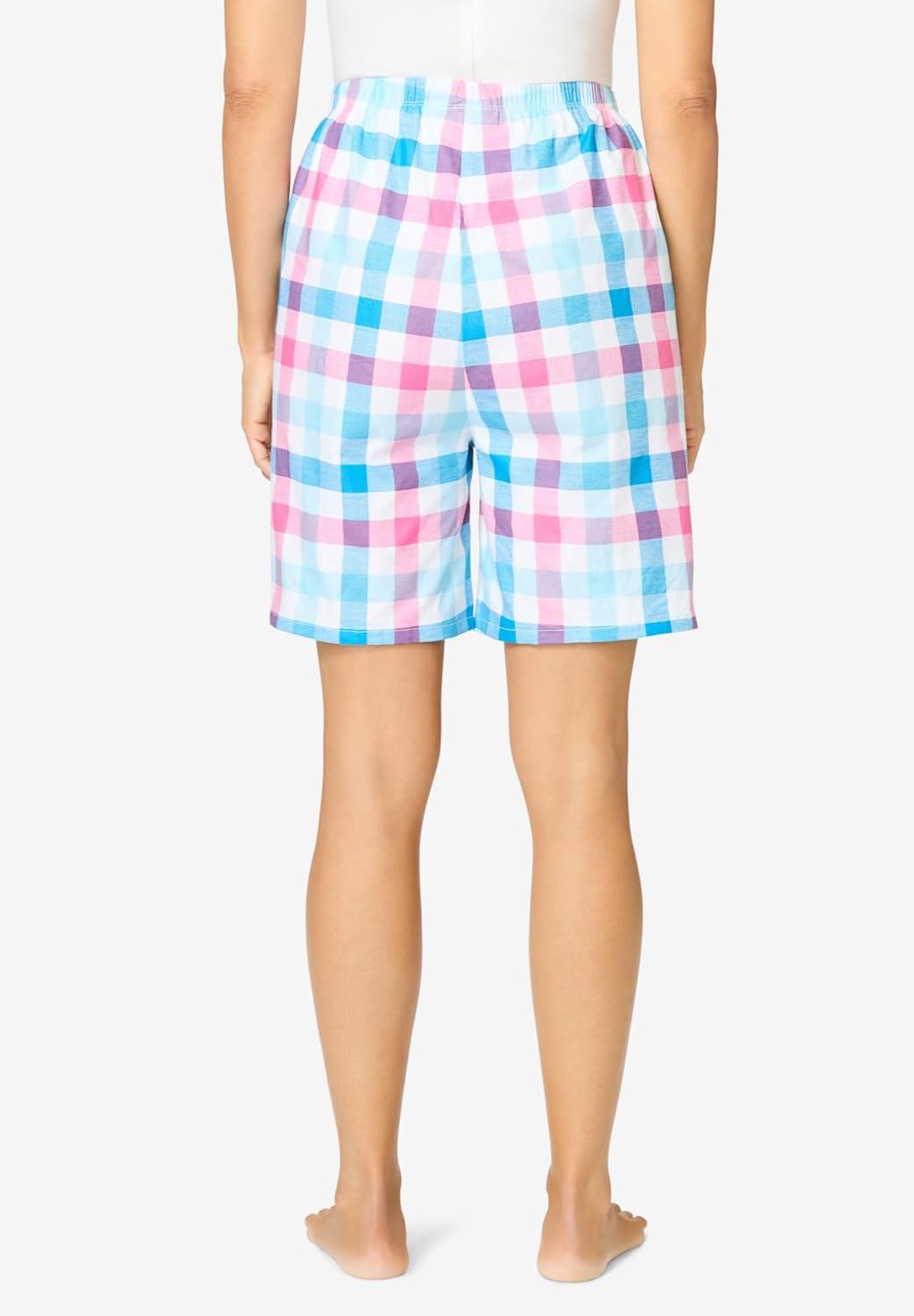 Dreams & Co. Plus Size Woven Sleep Short(Pink Blue Check)