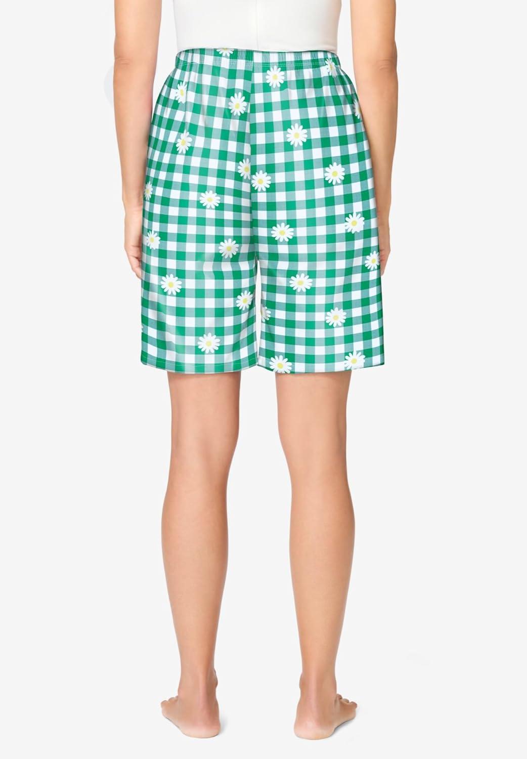 Dreams & Co. Plus Size Woven Sleep Short(Tropical Emerald Daisy)