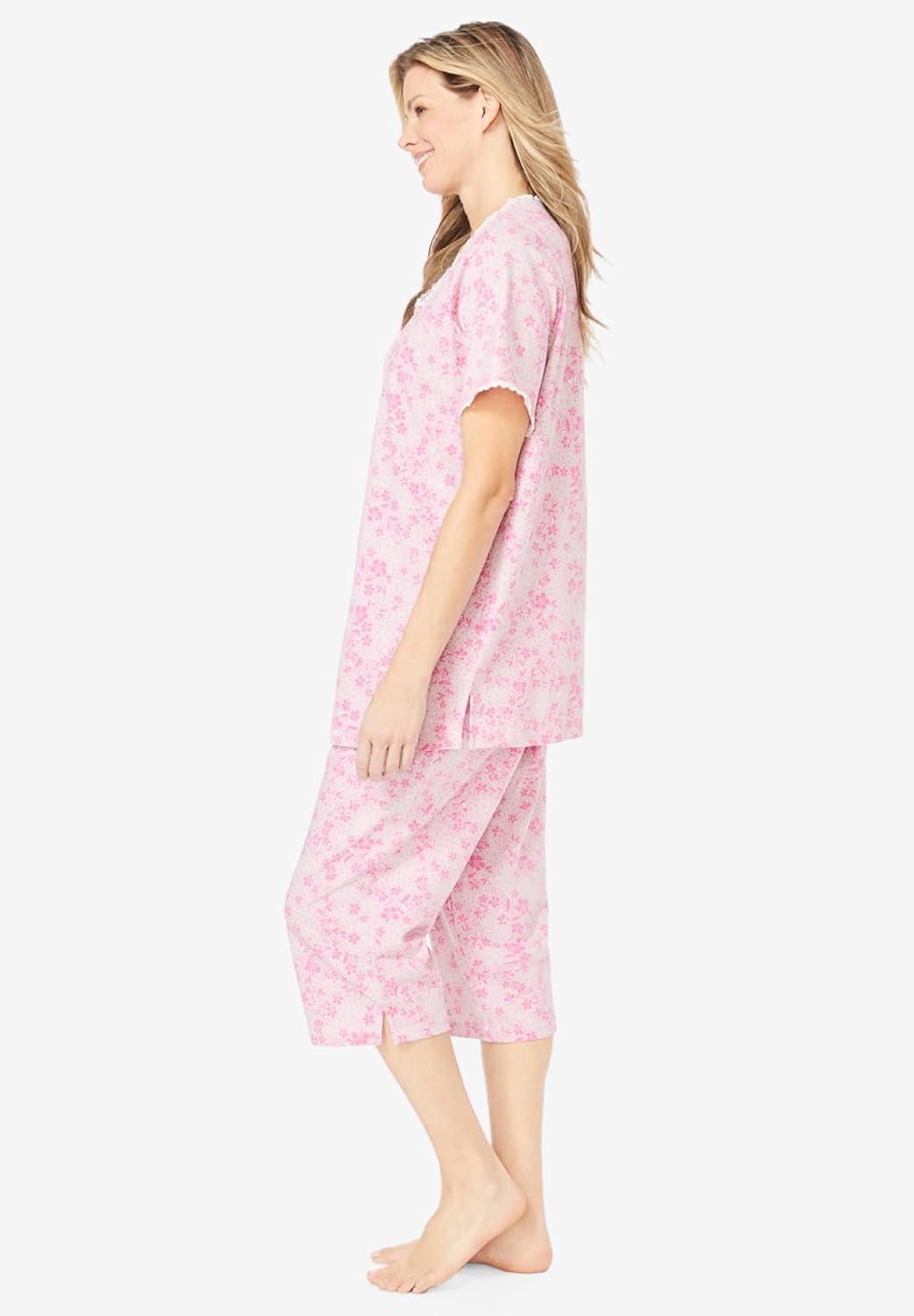 Only Necessities Plus Size 2-Piece Pintuck Tee And Capri Sleep Set(Pink Dancing Floral)