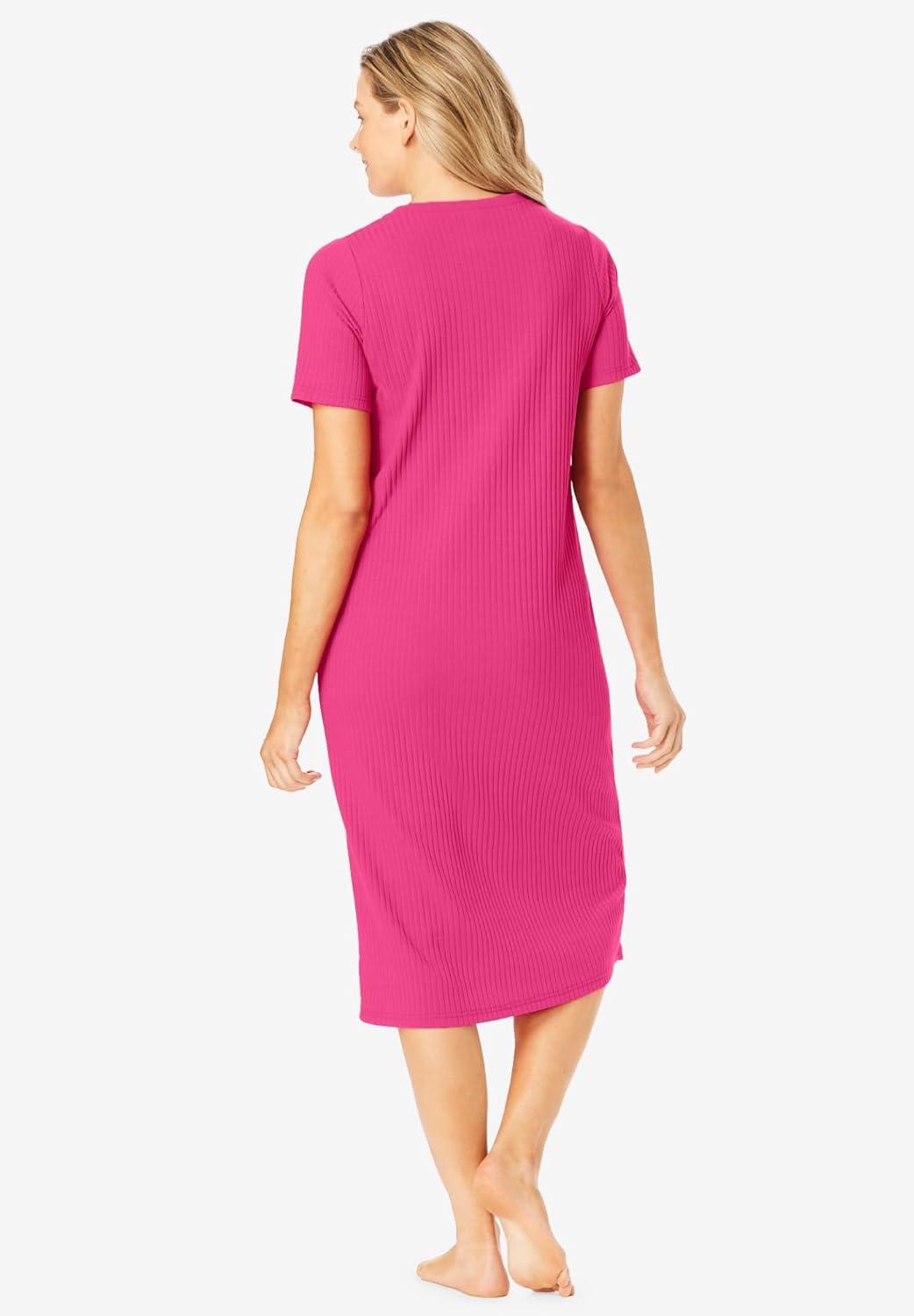Only Necessities Plus Size Ribbed Sleepshirt(Raspberry Sorbet)