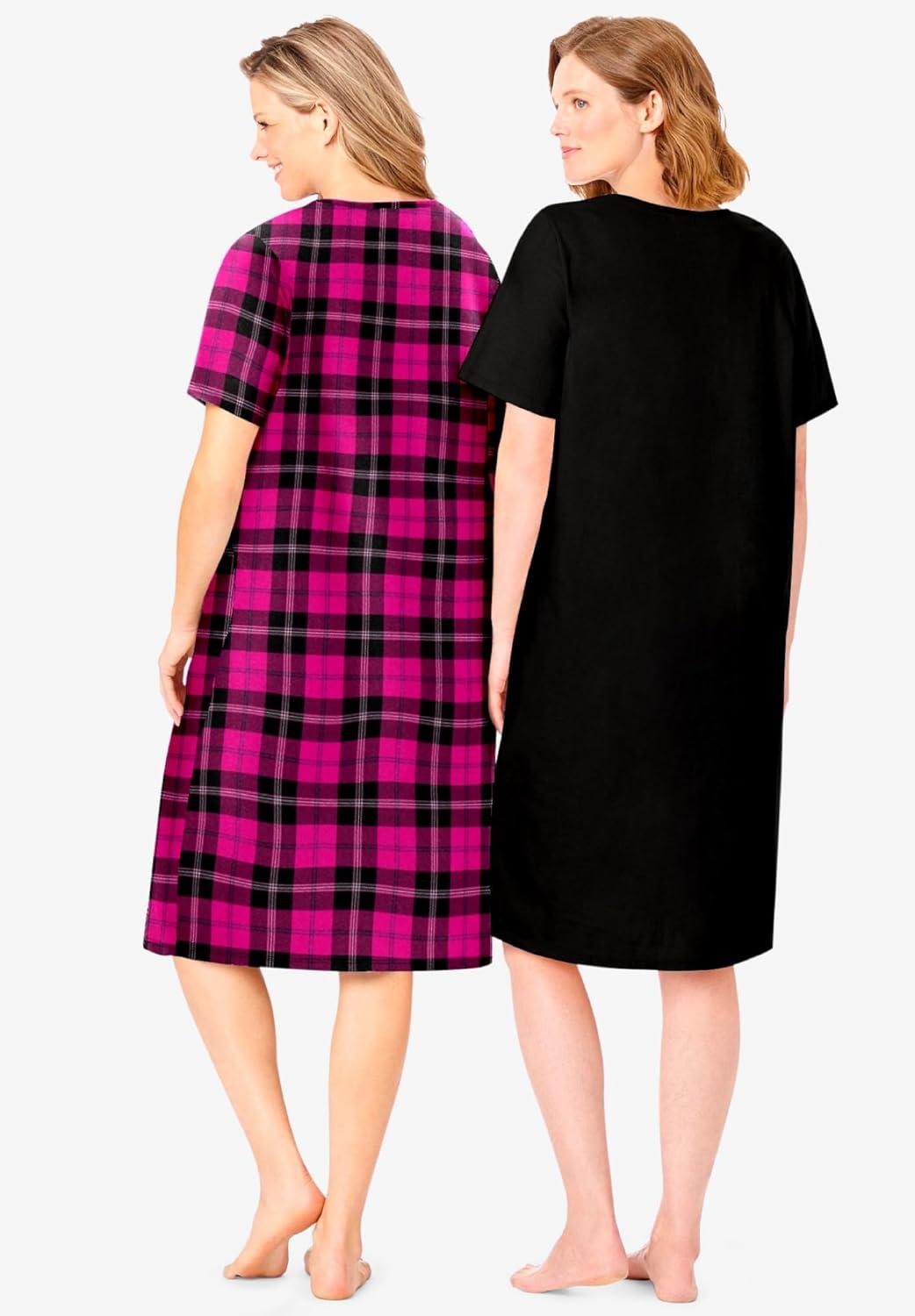 Dreams & Co. Plus Size 2-Pack Short-Sleeve Sleepshirt(Black Hearts)