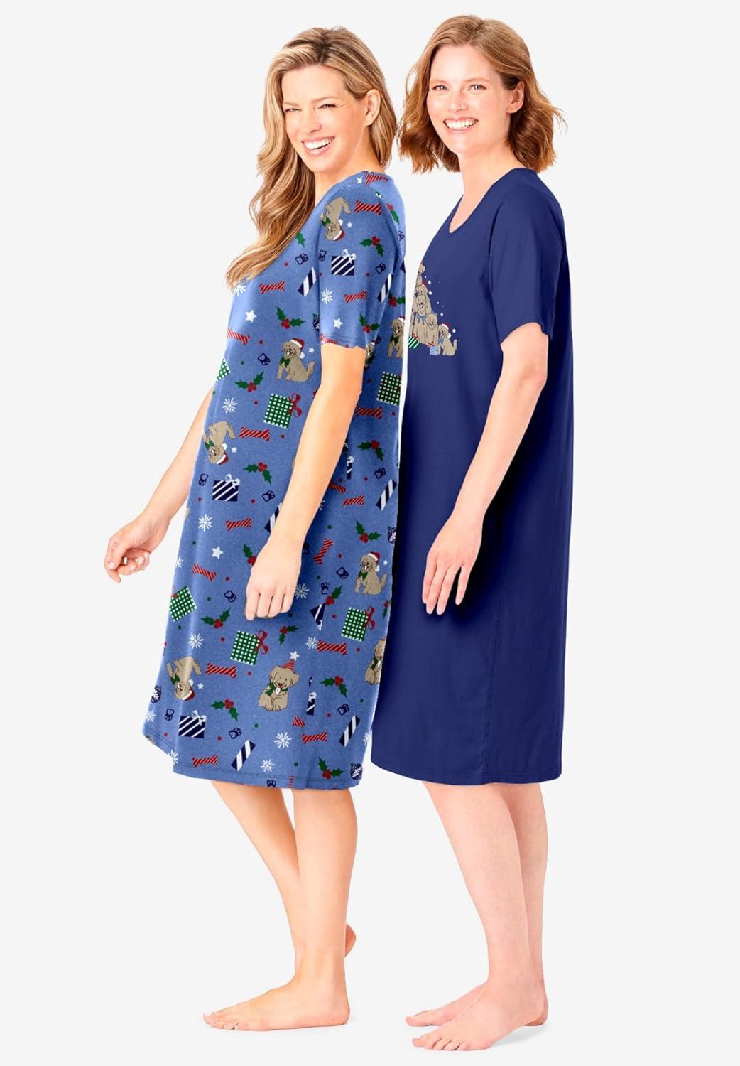 • Dreams & Co. Plus Size 2-Pack Short-Sleeve Sleepshirt(Evening Blue Pajamas)