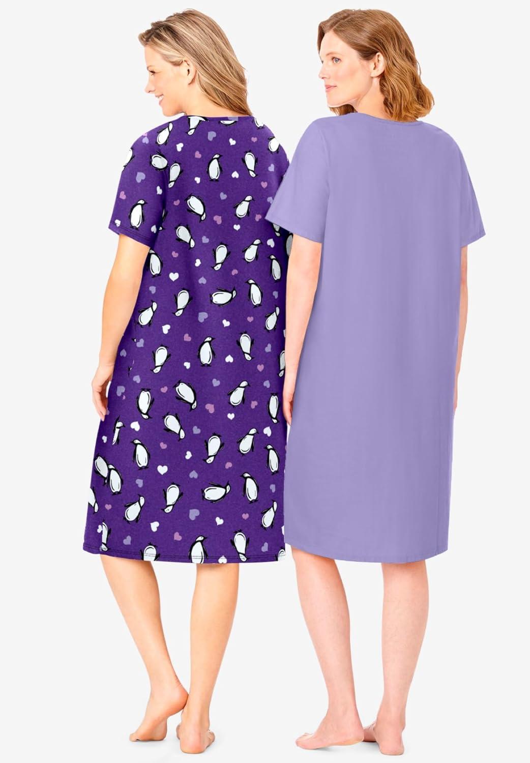 Dreams & Co. Plus Size 2-Pack Short-Sleeve Sleepshirt(Plum Burst Penguins)