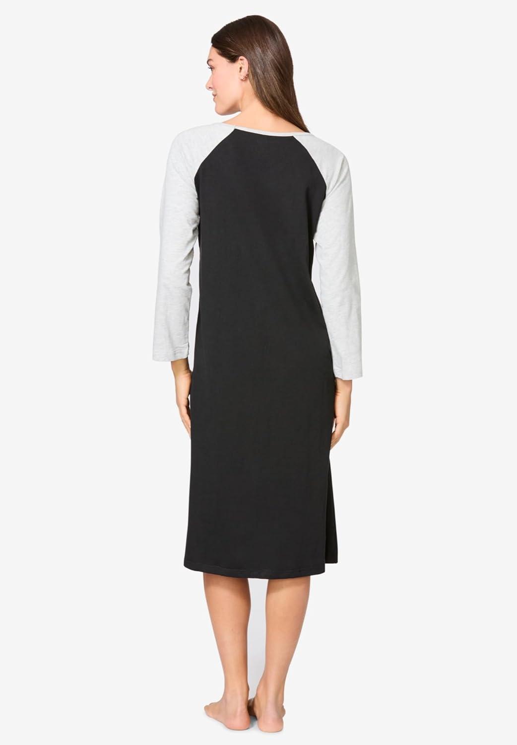 Dreams & Co. Plus Size Avenue Body Baseball Sleepshirt(Black)