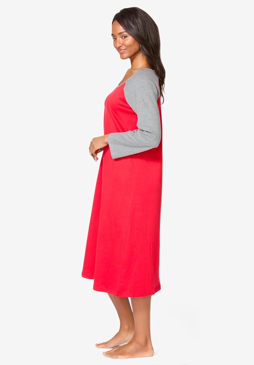 Dreams & Co. Plus Size Avenue Body Baseball Sleepshirt(Hot Red)