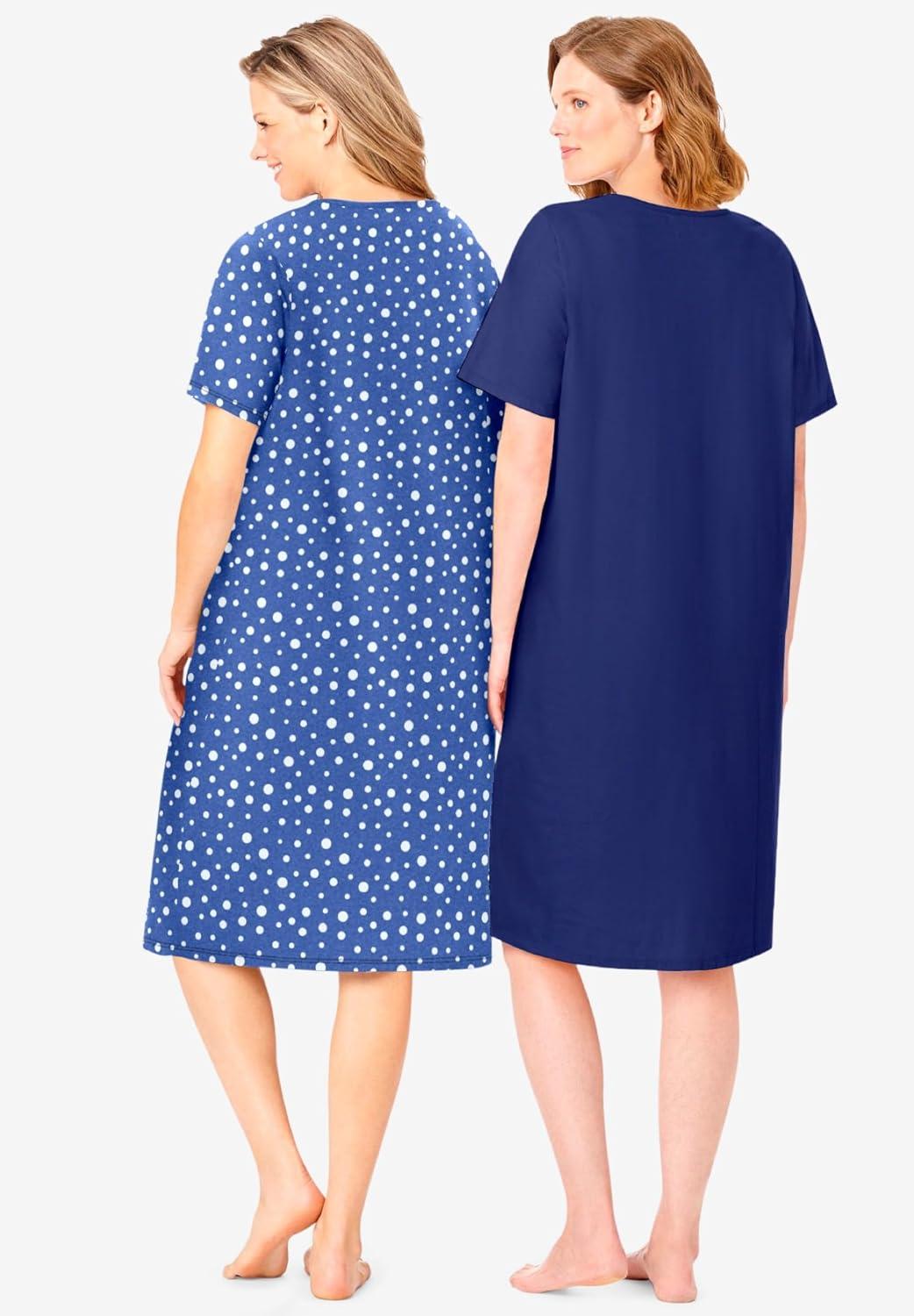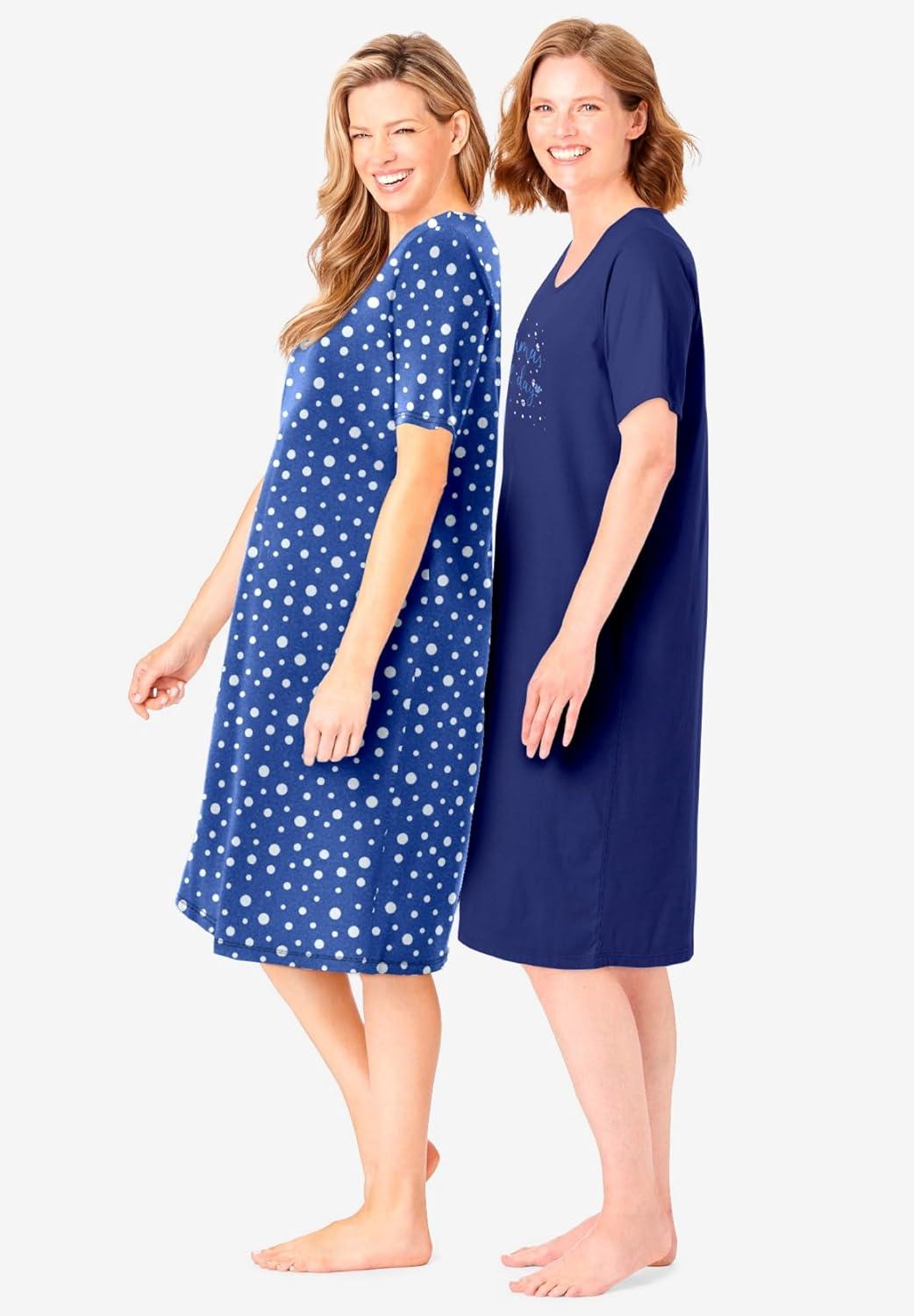 Dreams & Co. Plus Size 2-Pack Short-Sleeve Sleepshirt(Evening Blue Pajamas)