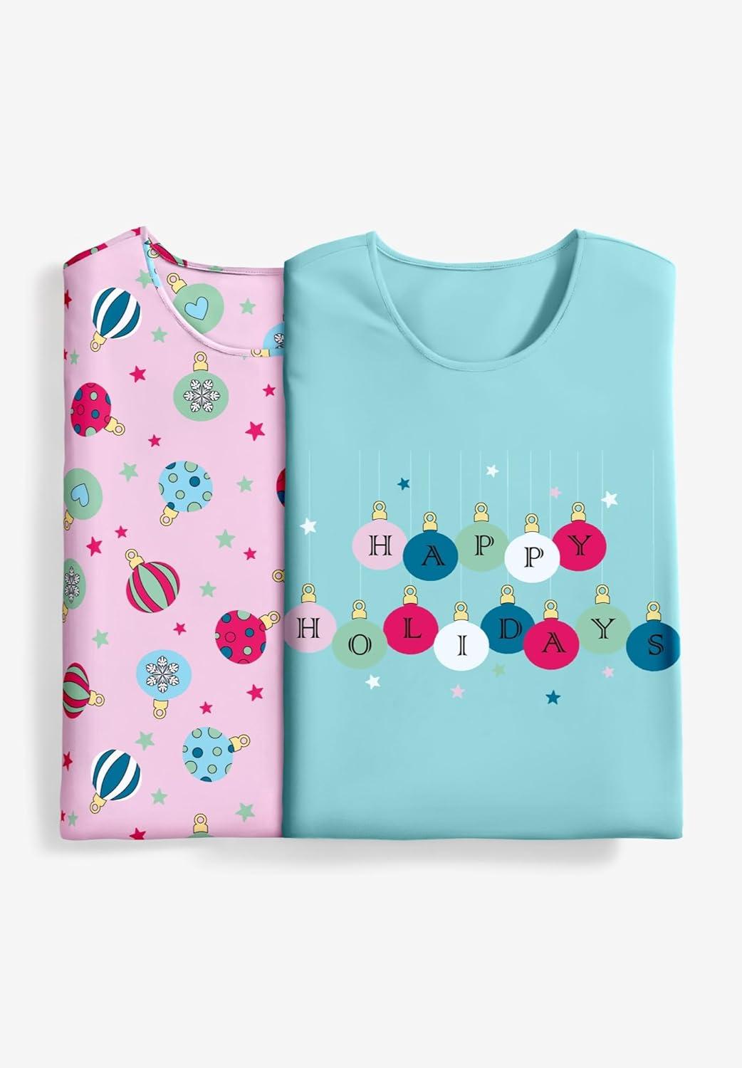 Dreams & Co. Plus Size 2-Pack Short-Sleeve Sleepshirt(Pale Ocean Ornament)