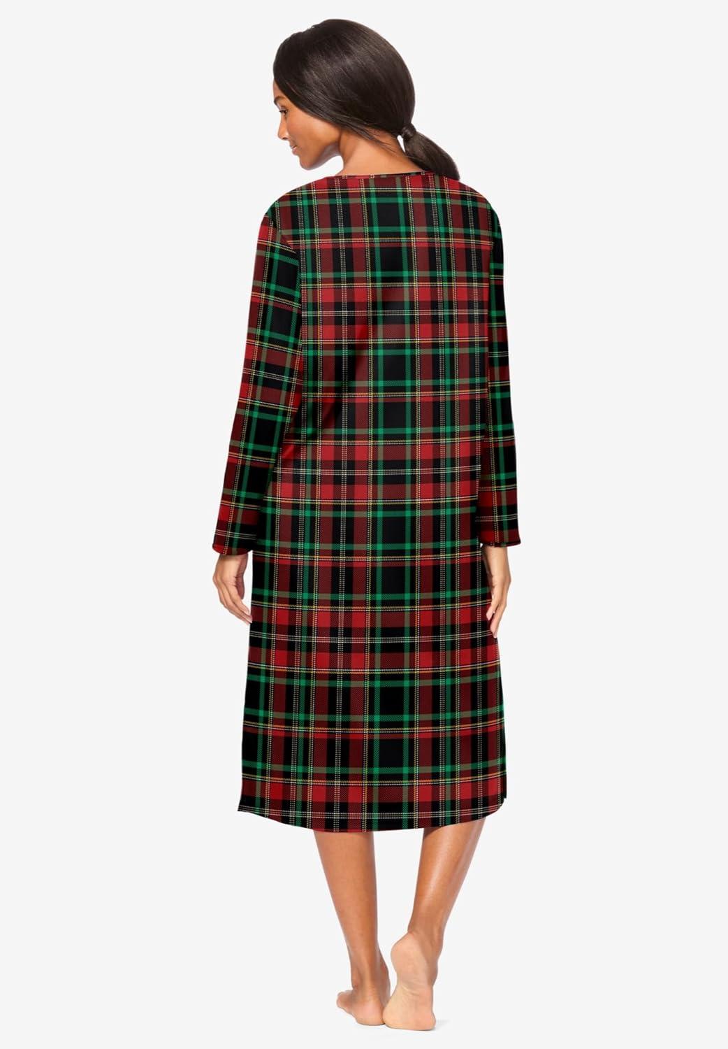Dreams & Co. Plus Size Long-Sleeve Henley Print Sleepshirt(Classic Red Plaid)