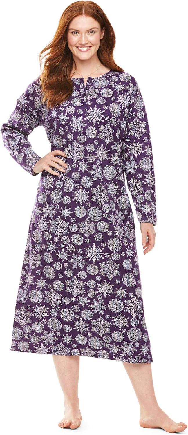 Dreams & Co. Plus Size Long-Sleeve Henley Print Sleepshirt(Evening Blue Dove)