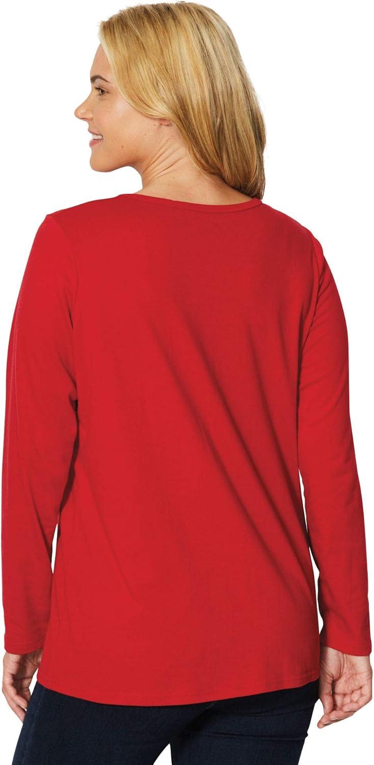 Woman Within Plus Size Half Placket Textured Tunic(Classic Red)