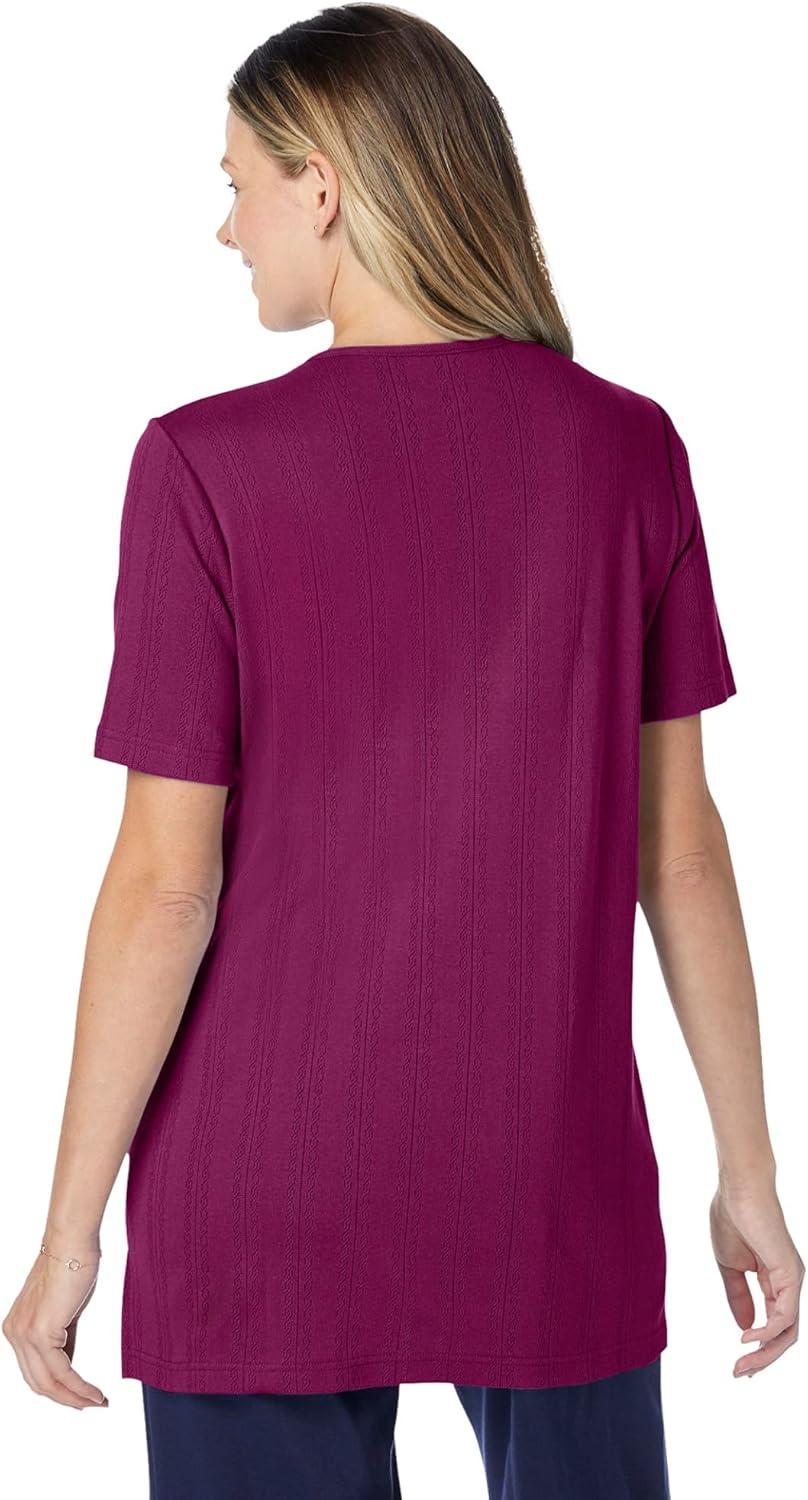 Woman Within Plus Size 7-Day Embroidered Pointelle Tunic(Dusty Pink Floral Embroidery)