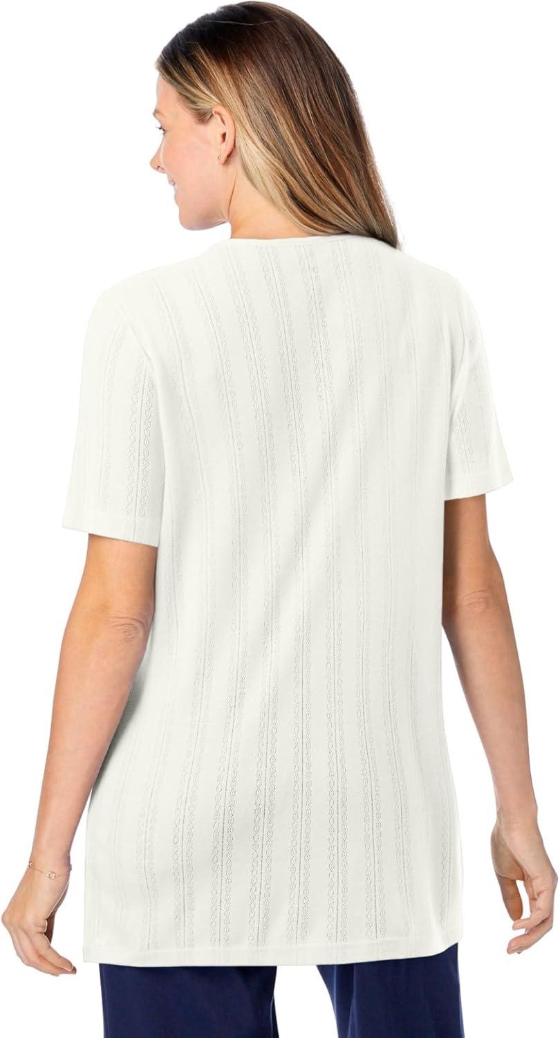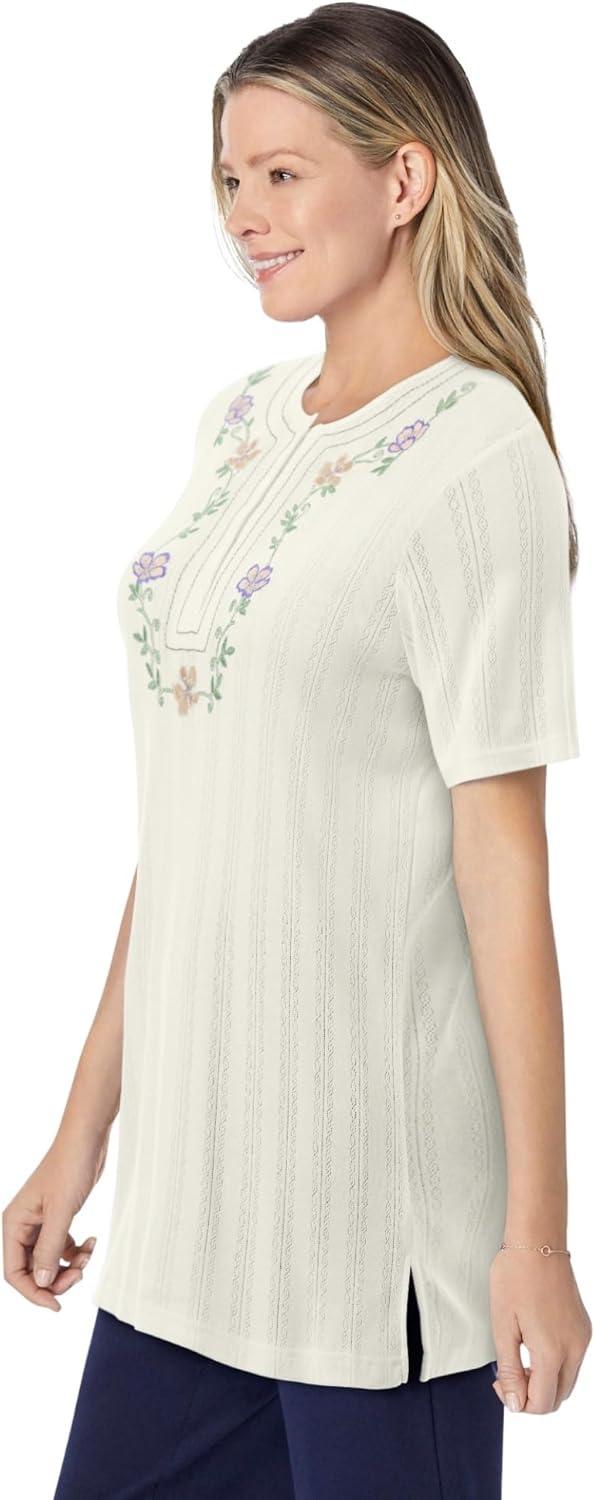 Woman Within Plus Size 7-Day Embroidered Pointelle Tunic(Ivory Floral Embroidery)