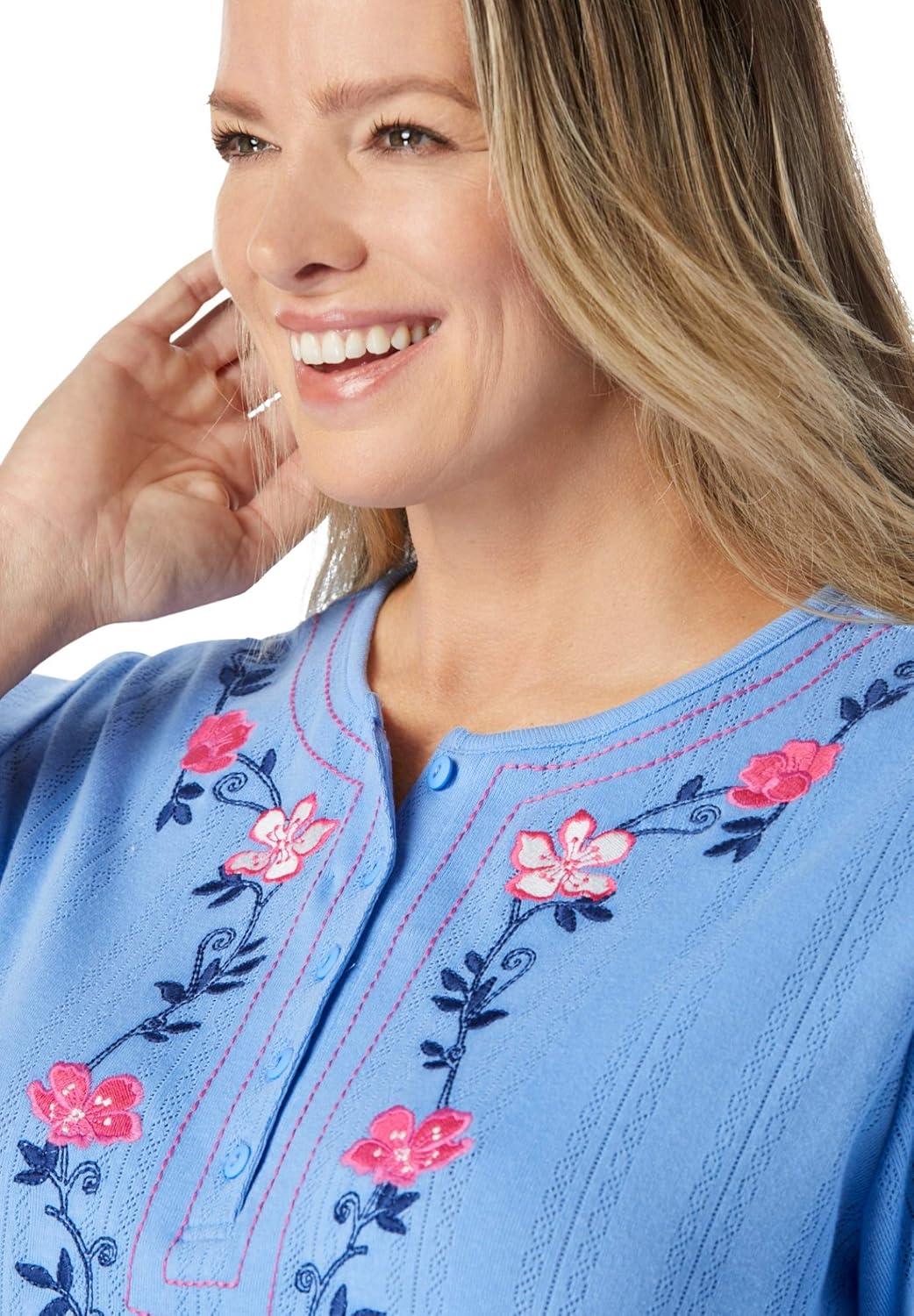 Woman Within Plus Size 7-Day Embroidered Pointelle Tunic(French Blue Floral Embroidery)