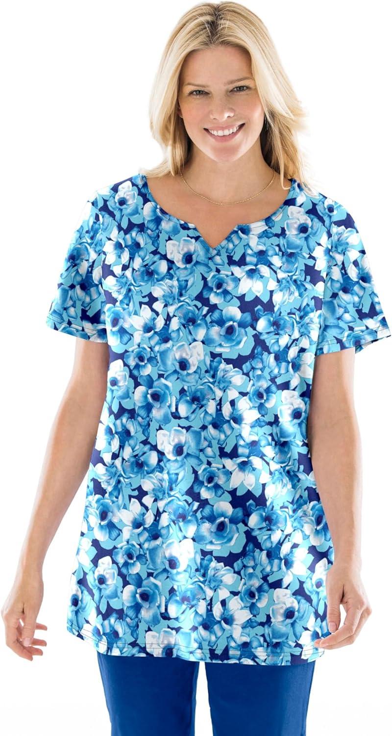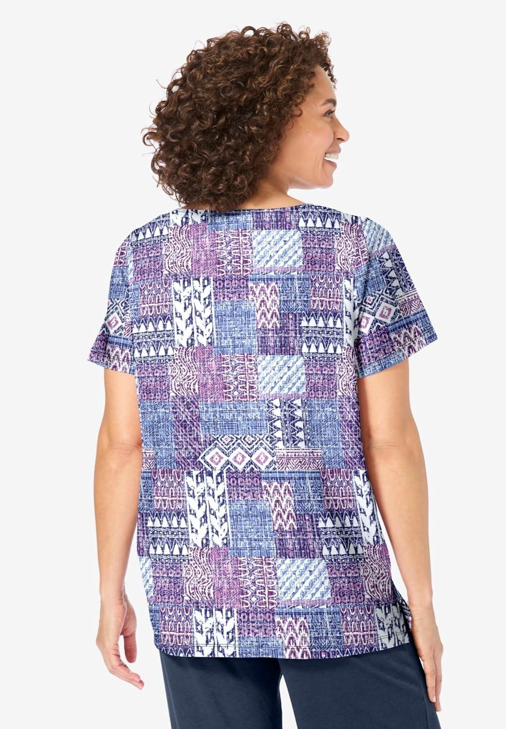 Woman Within Plus Size 7-Day Notch-Neck Tunic(Navy Geo Patchwork)
