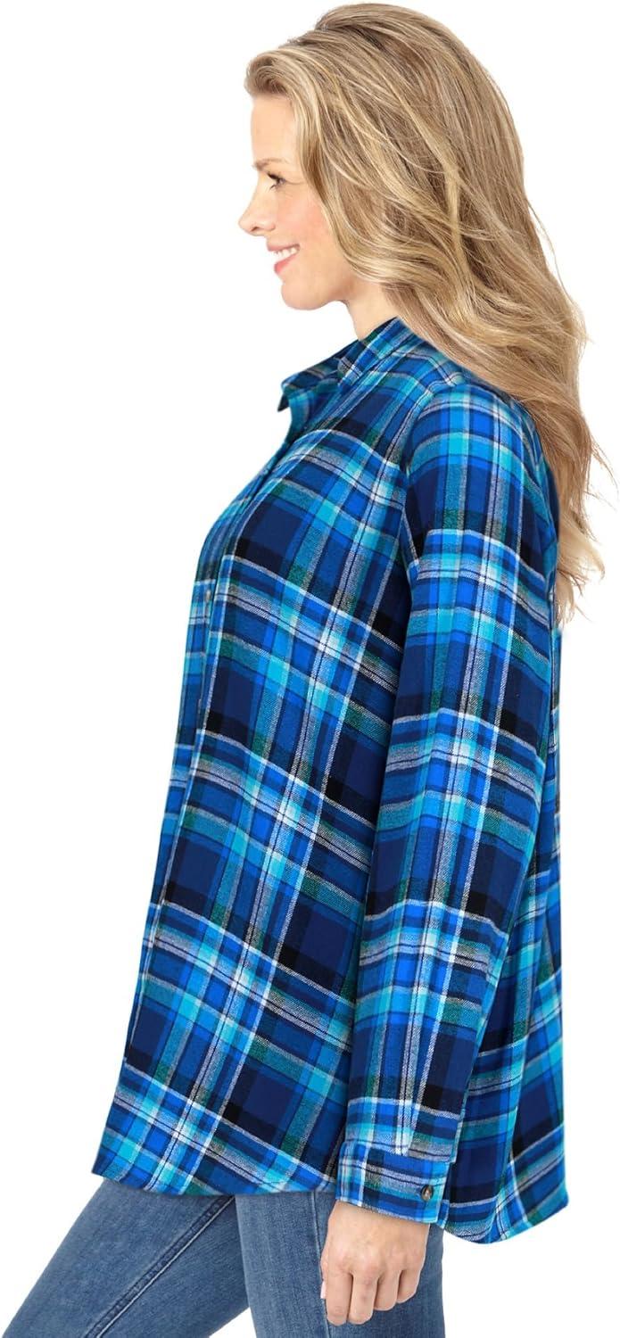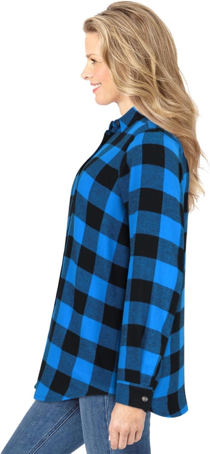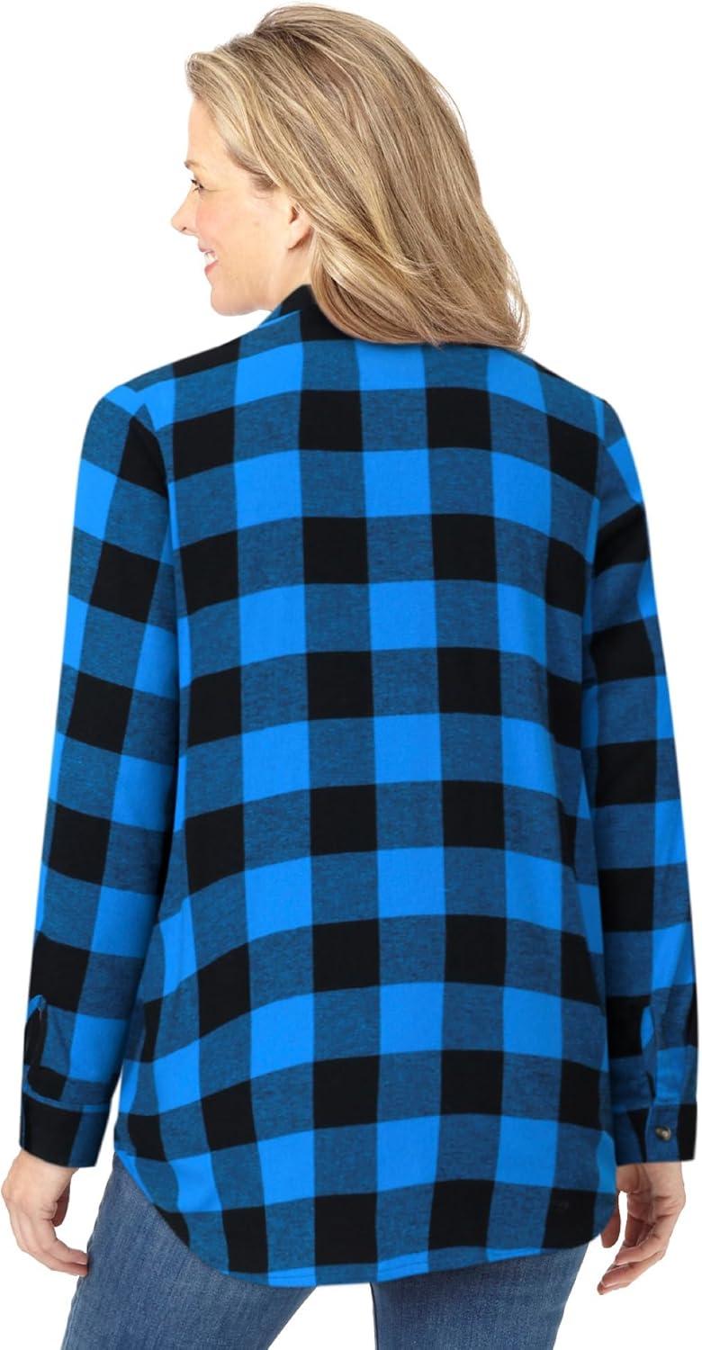 Woman Within Plus Size Classic Flannel Shirt(Azure Blue Large Buffalo)