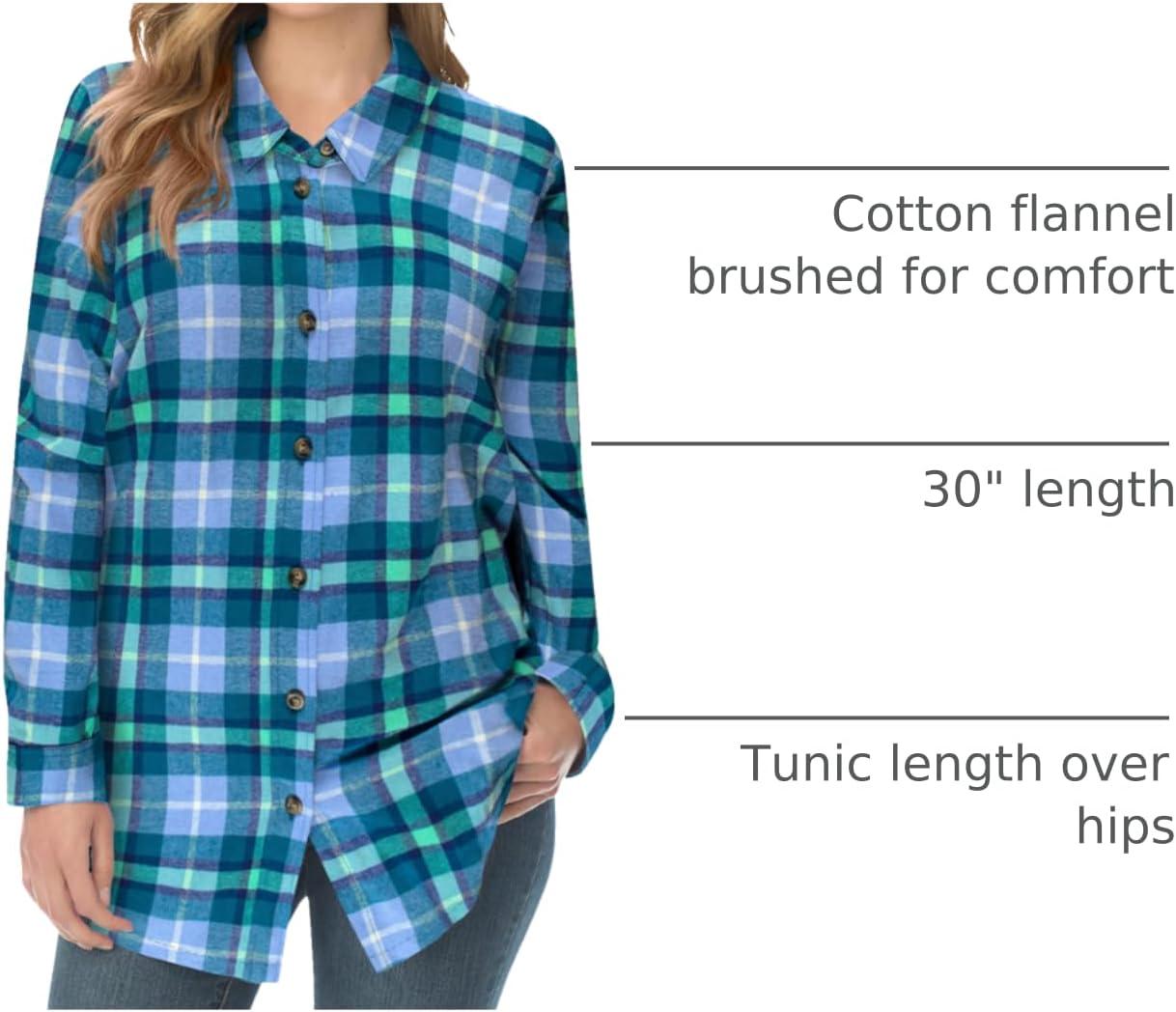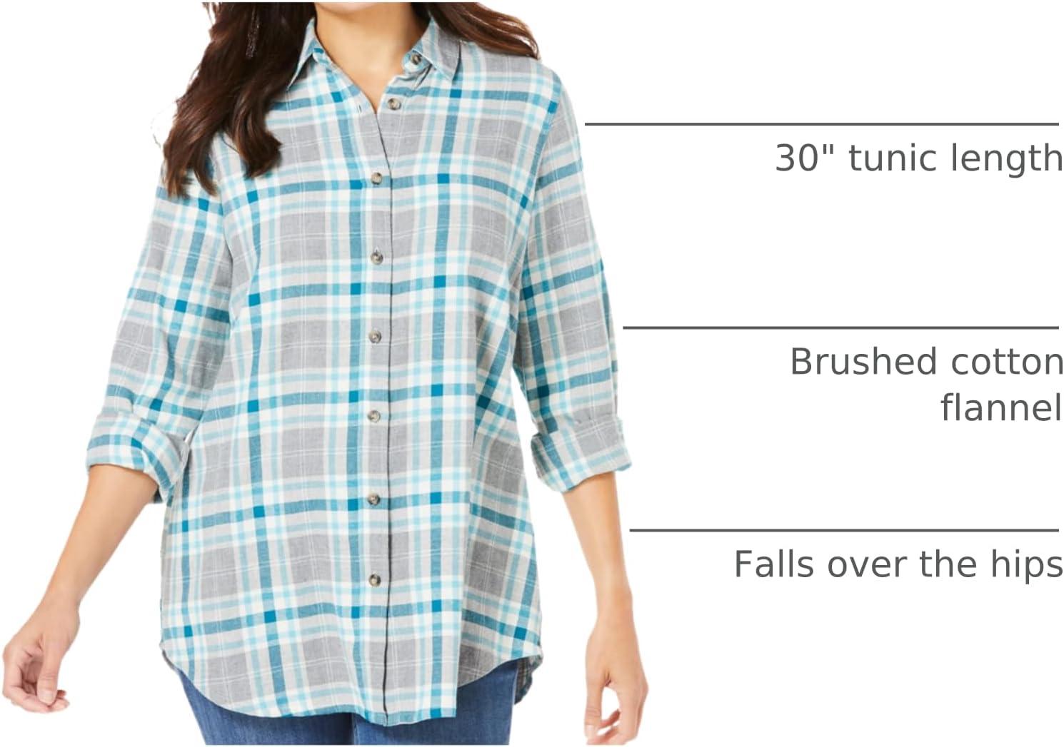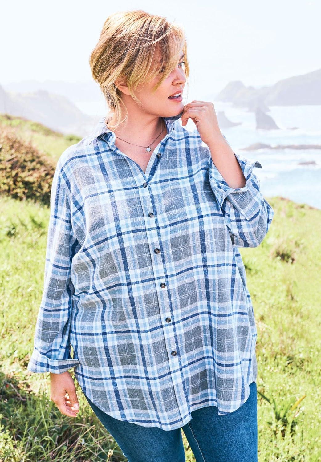 Woman Within Plus Size Classic Flannel Shirt(Azure Blue Large Buffalo)