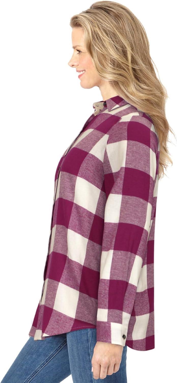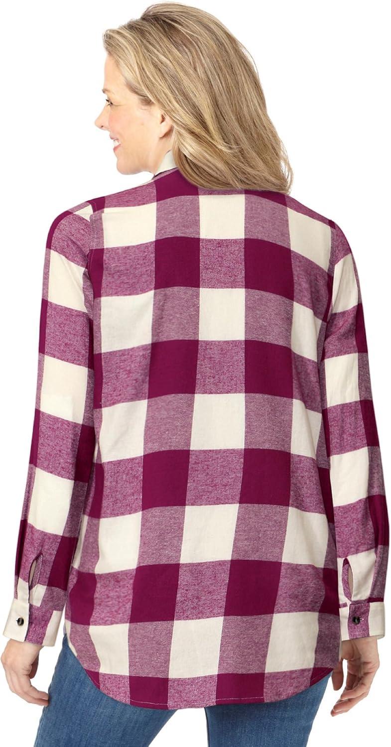 Woman Within Plus Size Classic Flannel Shirt(Deep Claret Large Buffalo)
