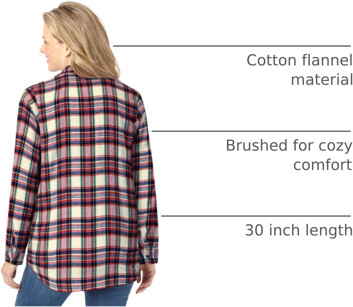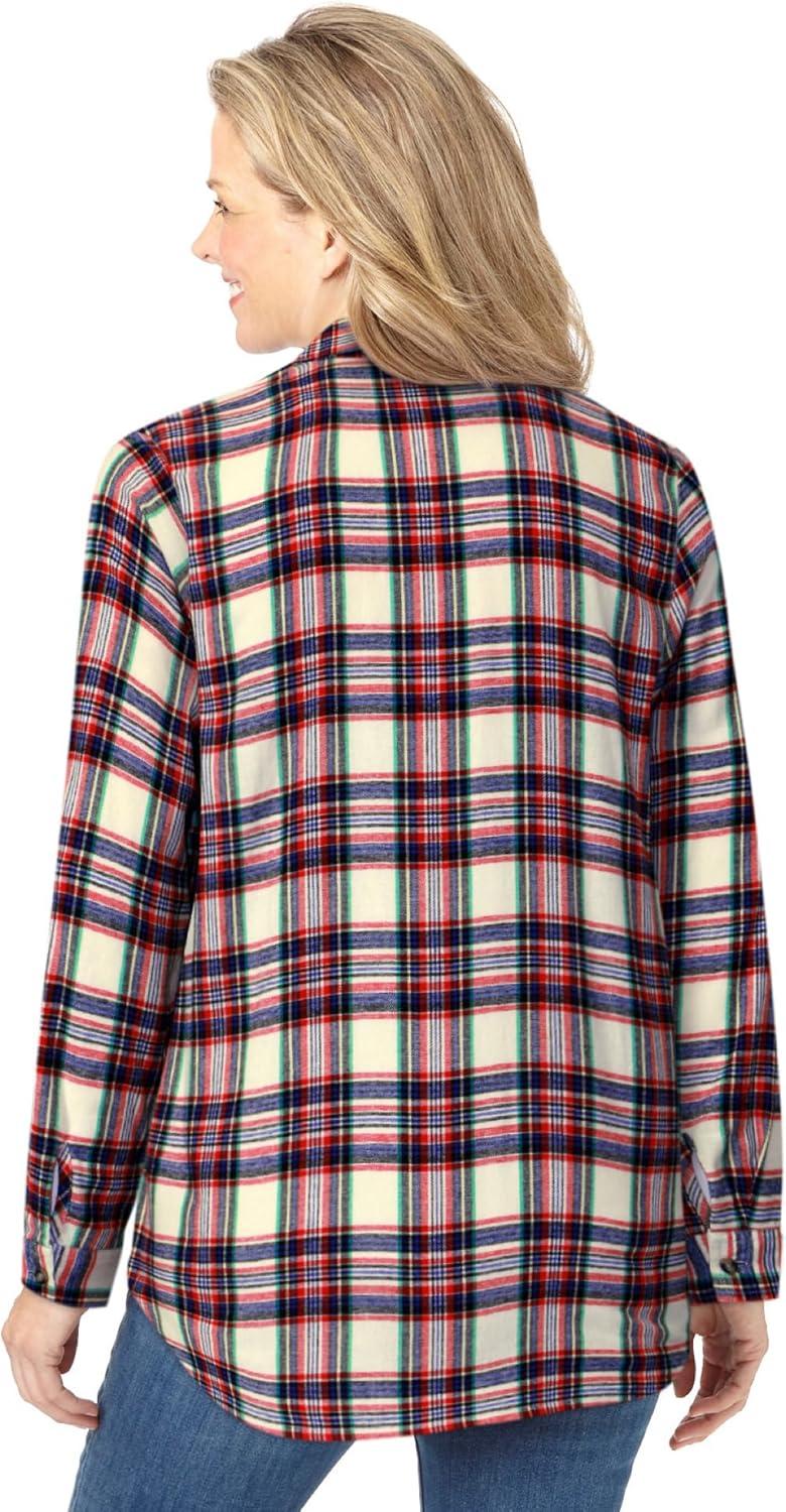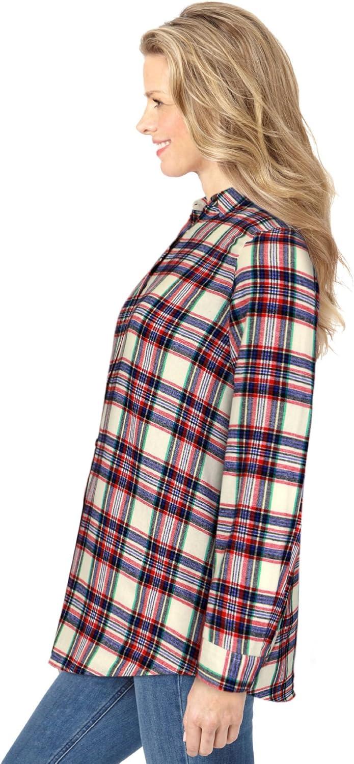 Woman Within Plus Size Classic Flannel Shirt(Ivory Multi Plaid)