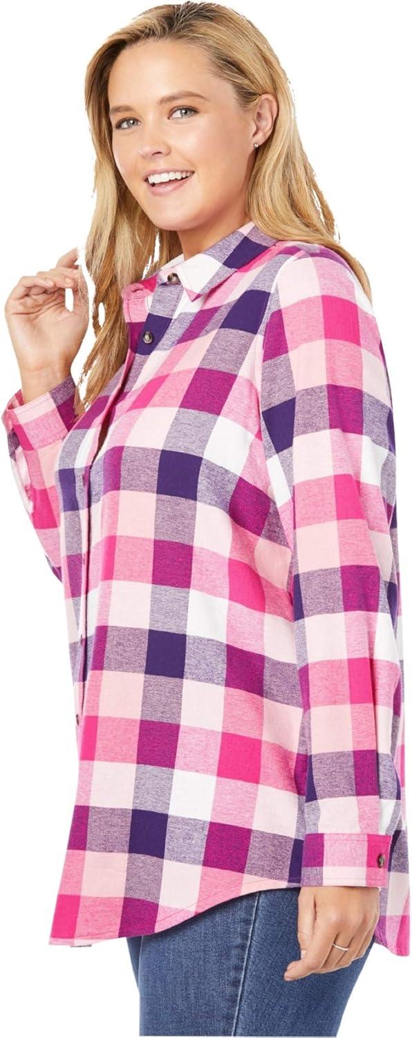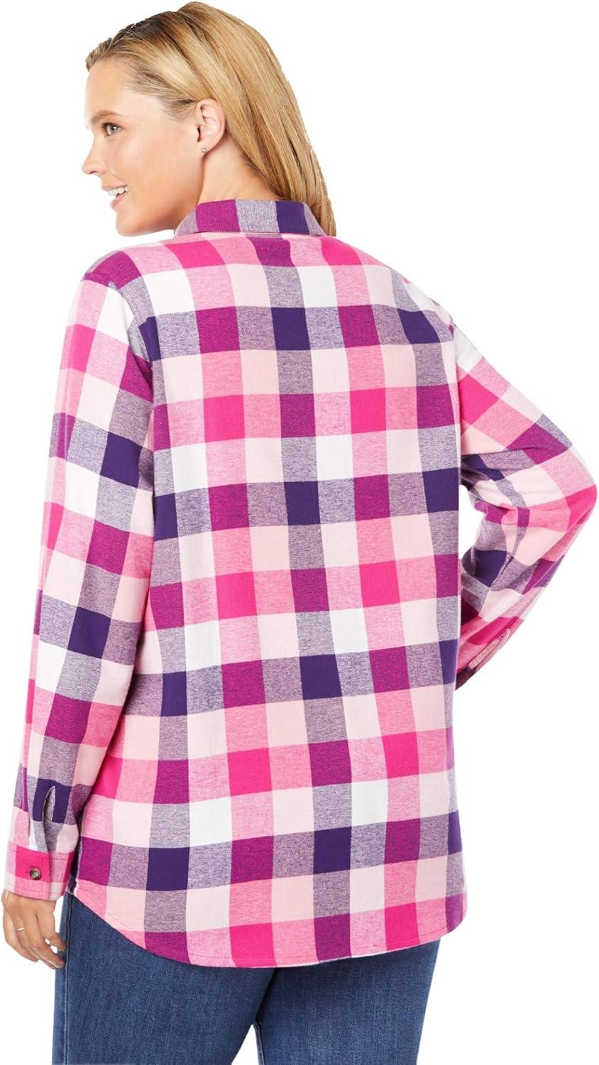 Woman Within Plus Size Classic Flannel Shirt(Raspberry Sorbet Multi Plaid)