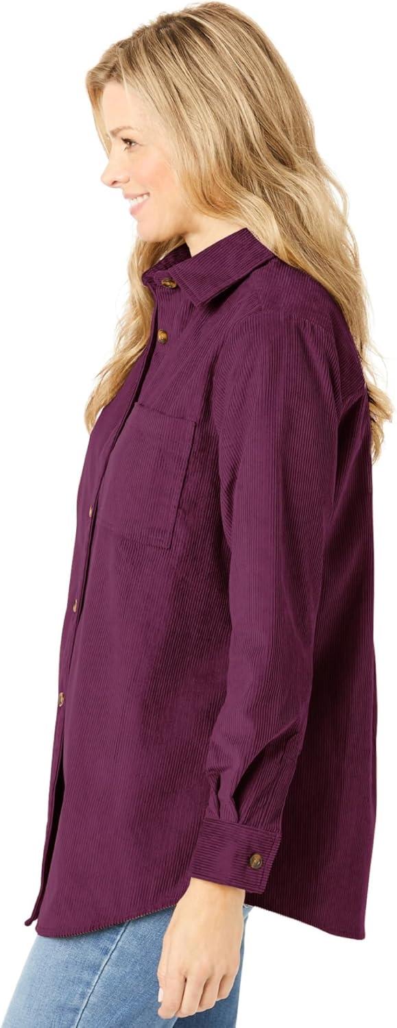 • Woman Within Plus Size Corduroy Shirt(Deep Claret)