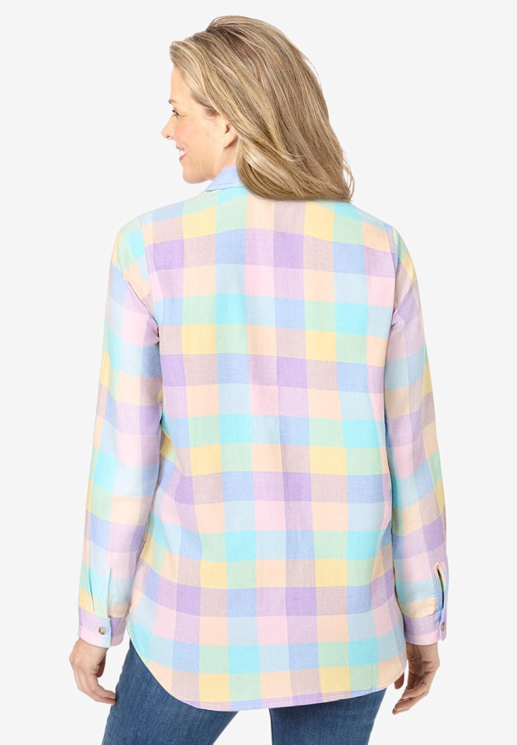 Woman Within Plus Size Classic Flannel Shirt(Multi Pastel Plaid)