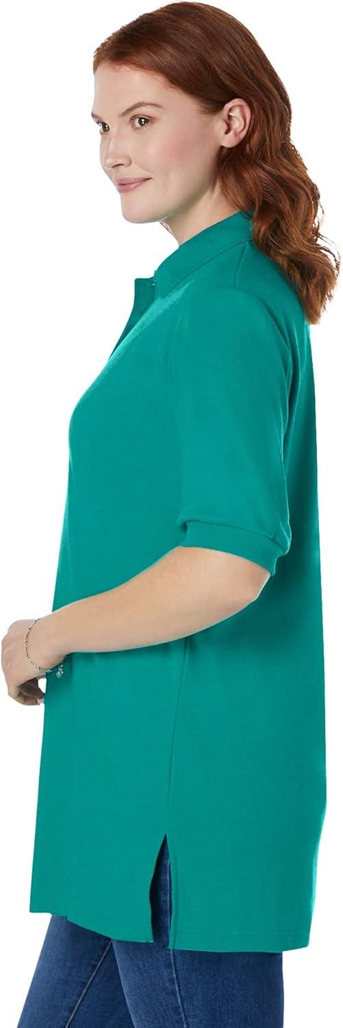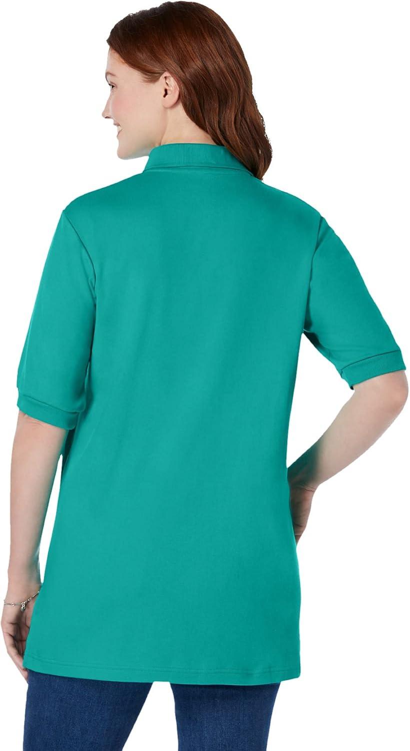 Woman Within Plus Size Elbow-Sleeve Polo Tunic(Emerald Green)
