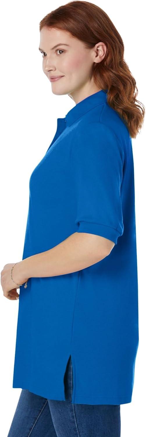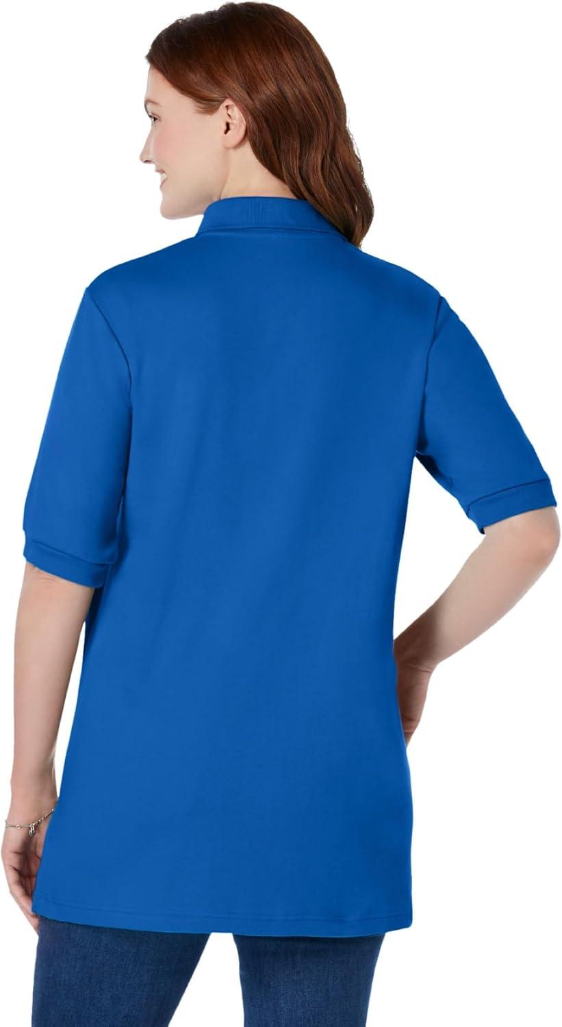Woman Within Plus Size Elbow-Sleeve Polo Tunic(Bright Cobalt)
