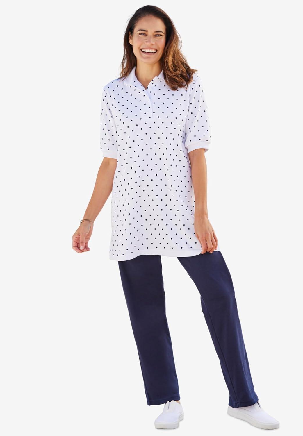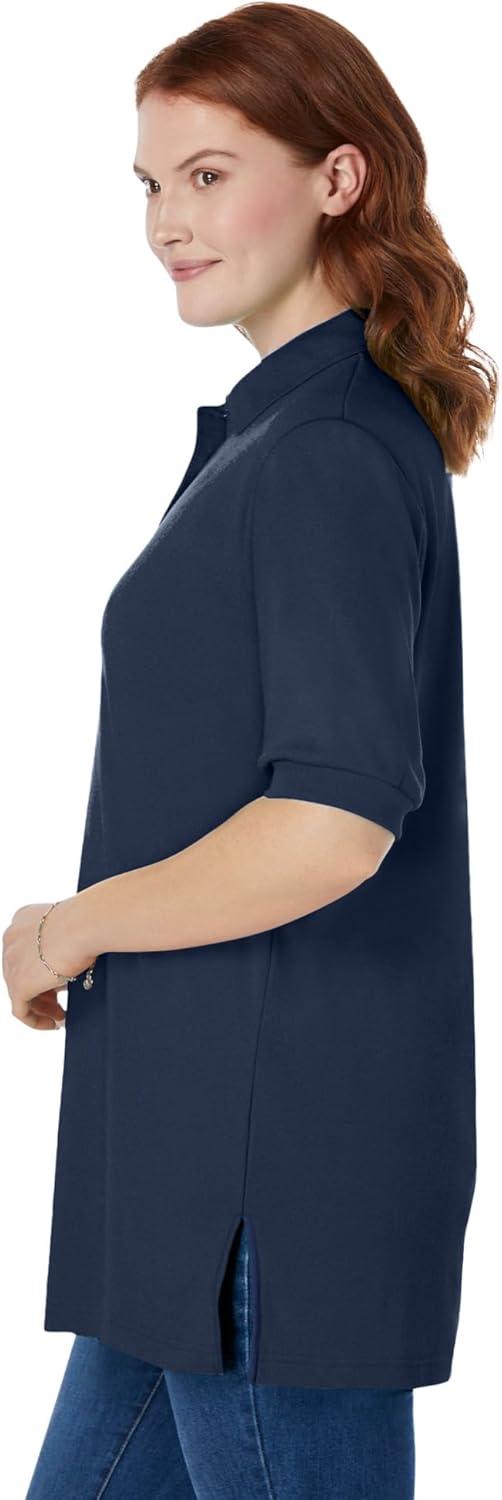 Woman Within Plus Size Elbow-Sleeve Polo Tunic(Navy)