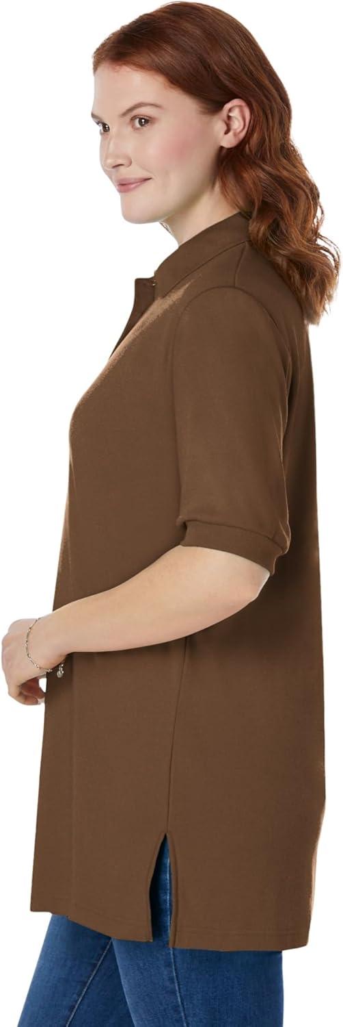 Woman Within Plus Size Elbow-Sleeve Polo Tunic(Chocolate)