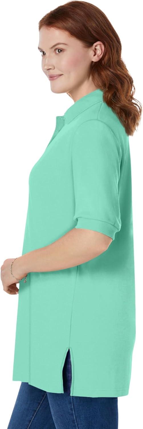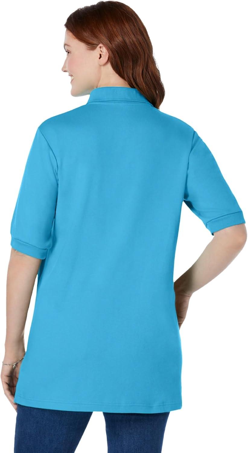 Woman Within Plus Size Elbow-Sleeve Polo Tunic(Waterfall)