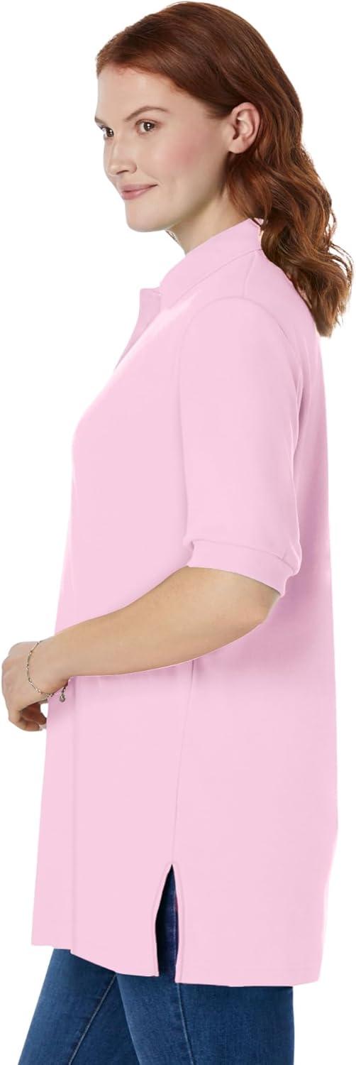 Woman Within Plus Size Elbow-Sleeve Polo Tunic(Pink)